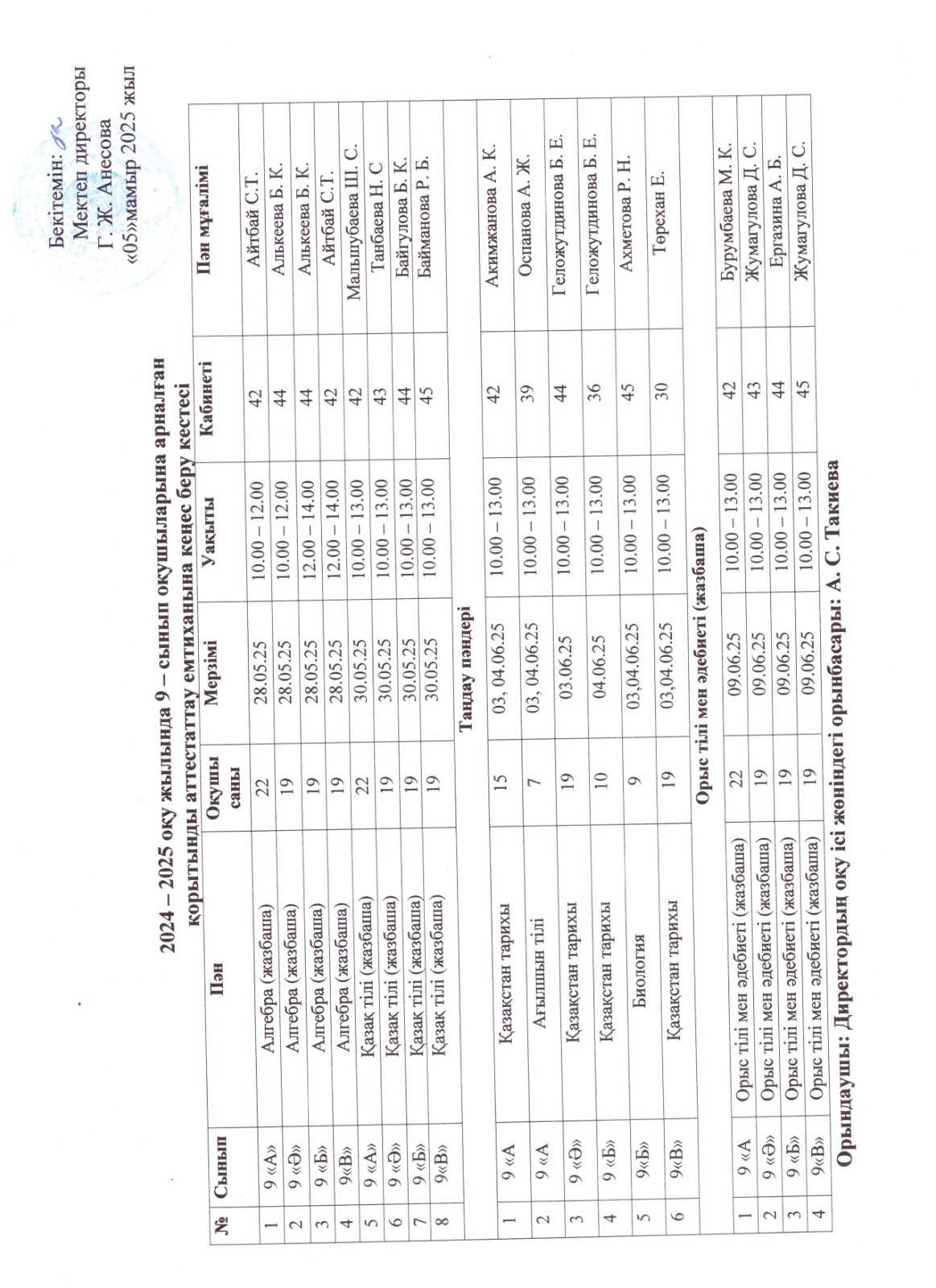9 сынып қортынды аттестаттау емтихан кестесі 2024-2025 оқу жылы | көшіріп алу |