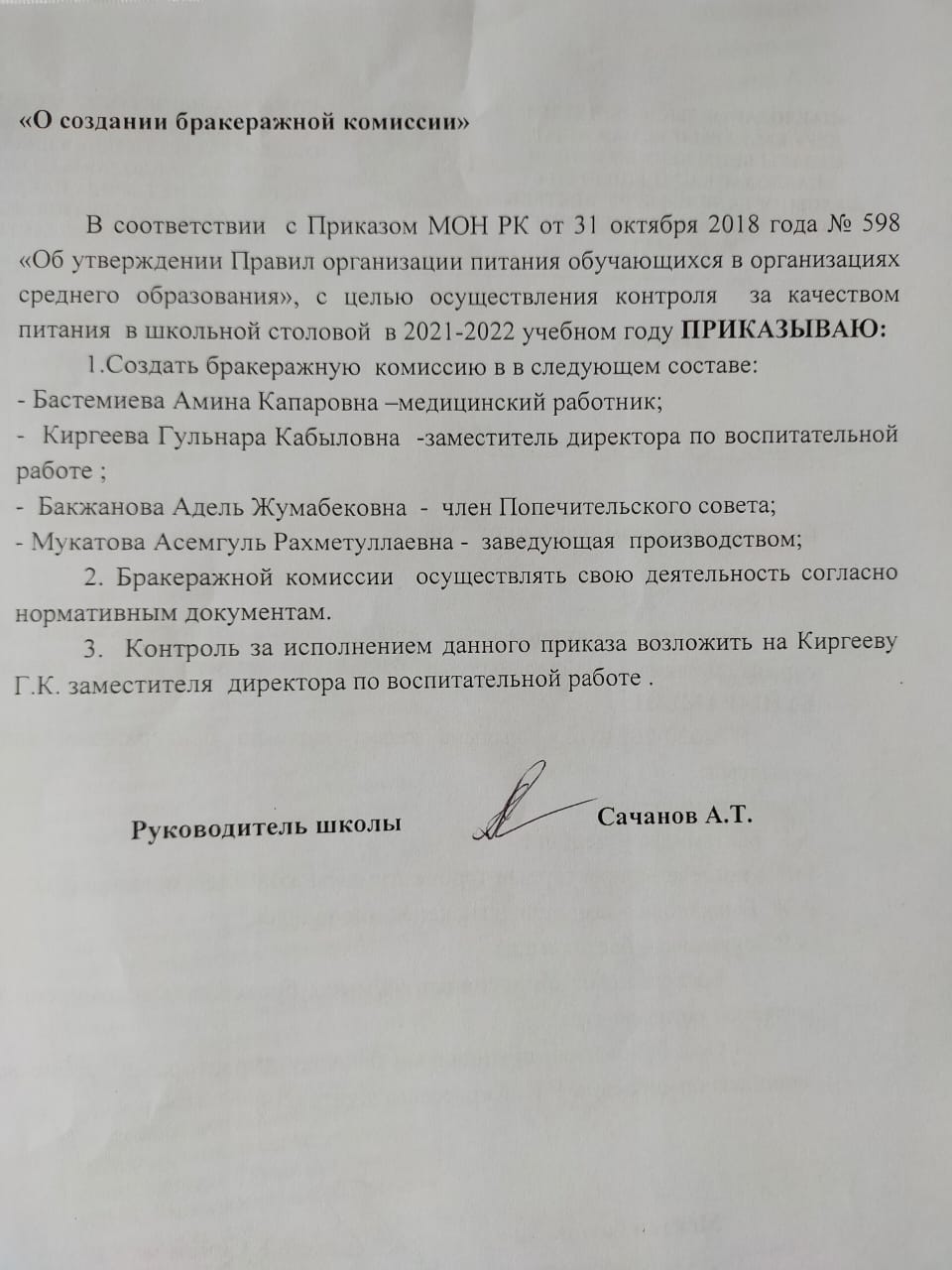 Приказ о создании бракеражной комиссии | Скачать |