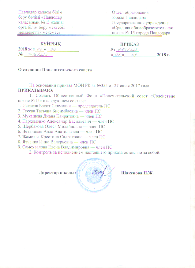 Приказ о создании попечительского совета отдела образования города Павлодара | Скачать Смотреть |
