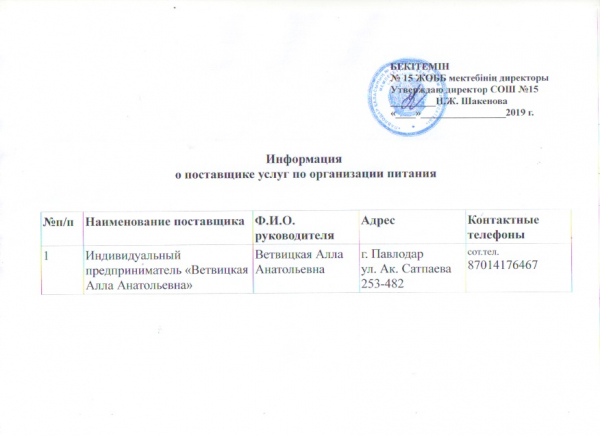 Информация о поставщике услуг по организации питания | көшіріп алу |