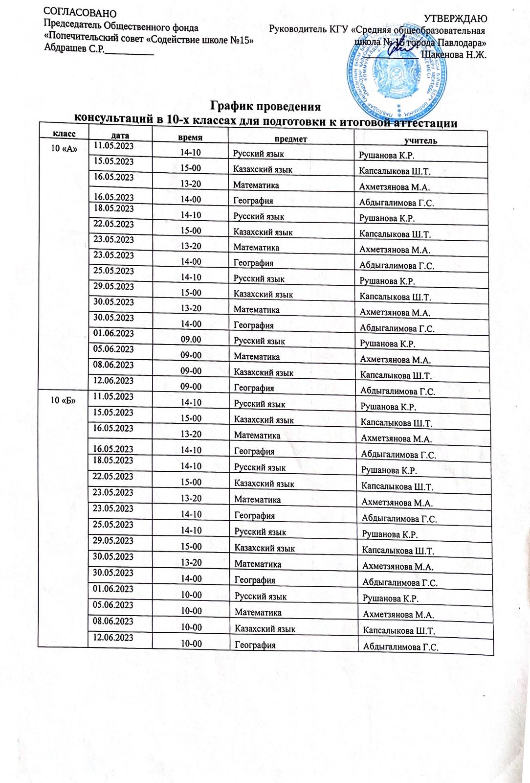 - График проведения консультаций для подготовки к экзамену по казахскому языку 2023-2024 учебный год