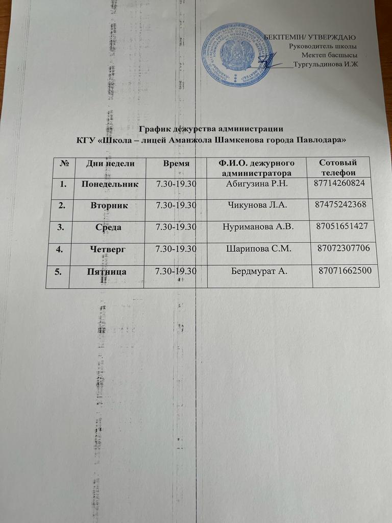 График дежурства администрации | Скачать |