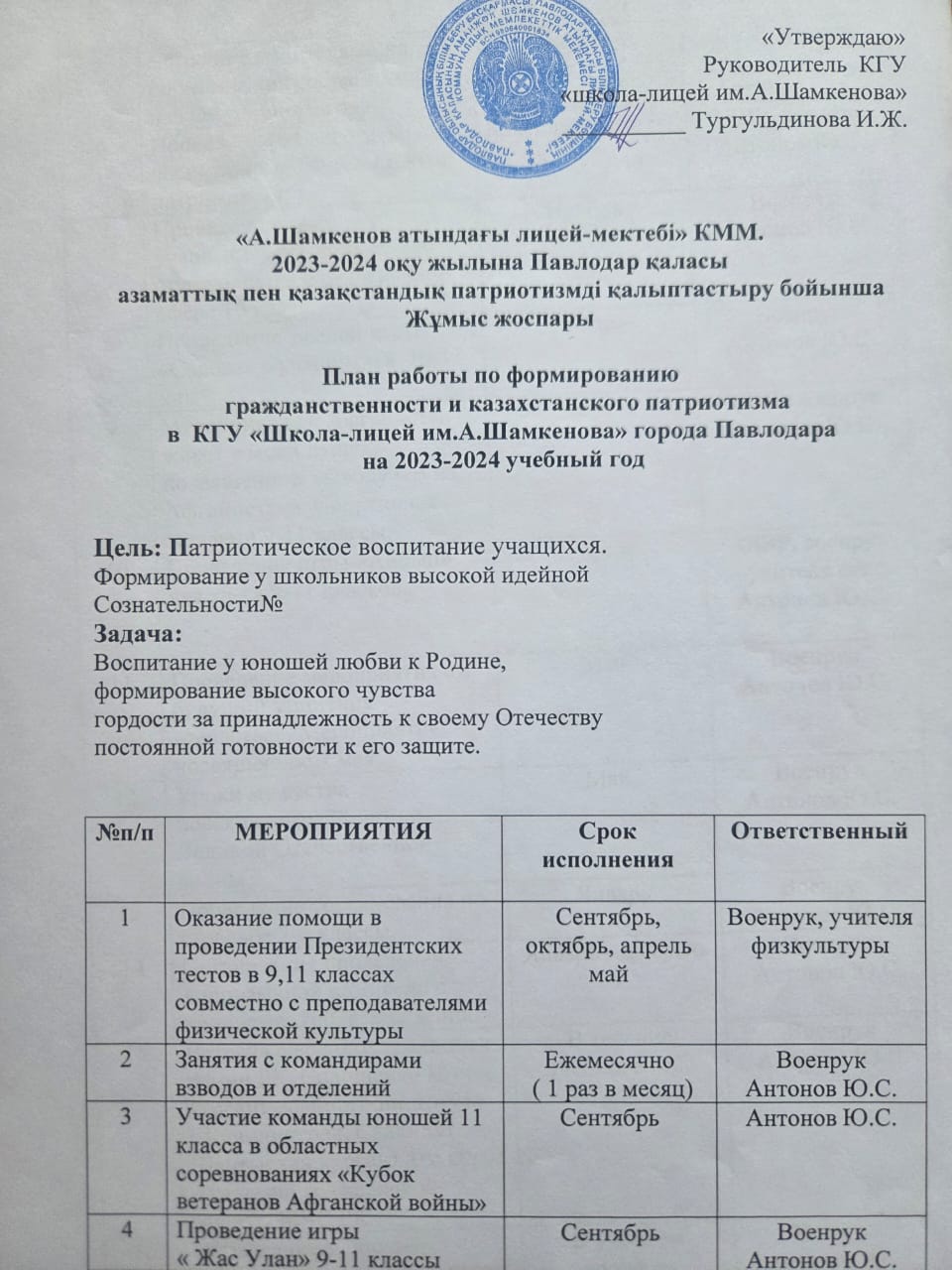 План военно-патриотического воспитания 2023-2024 учебный год