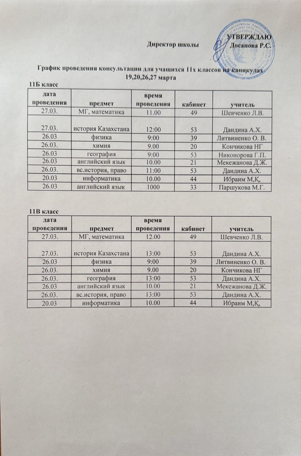 График проведения консультаций на каникулах 19,20,26,27 марта 20226 года | Скачать |