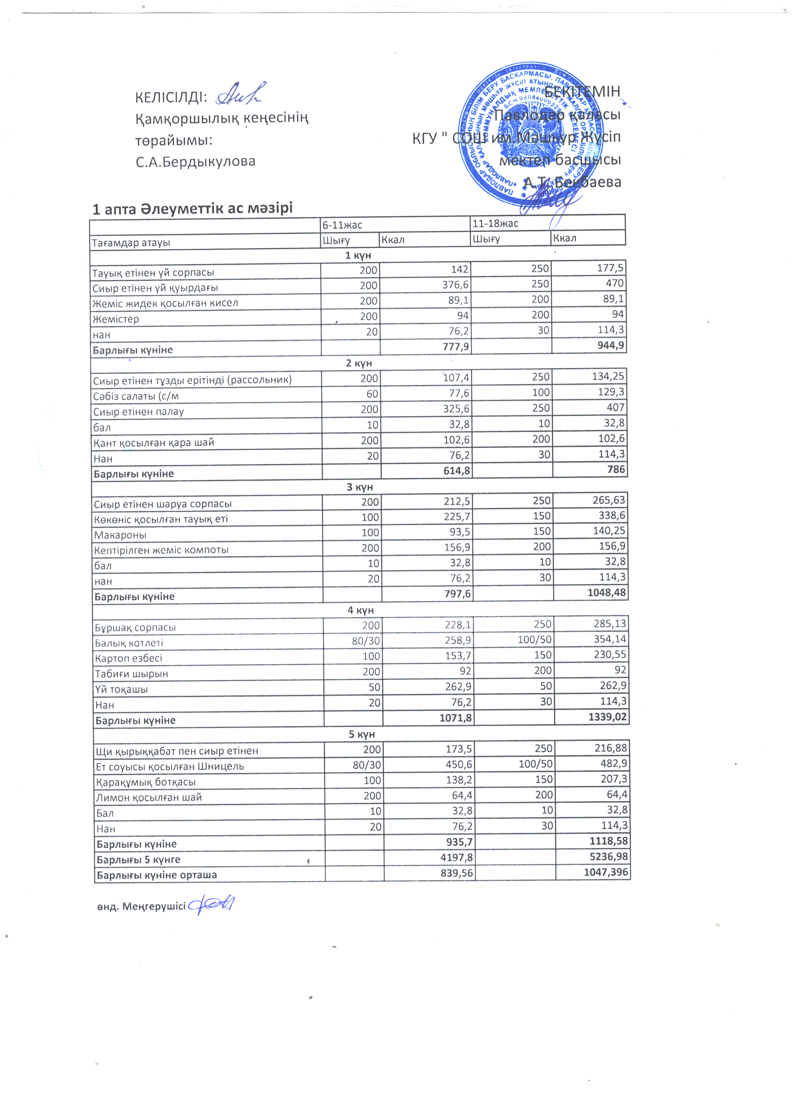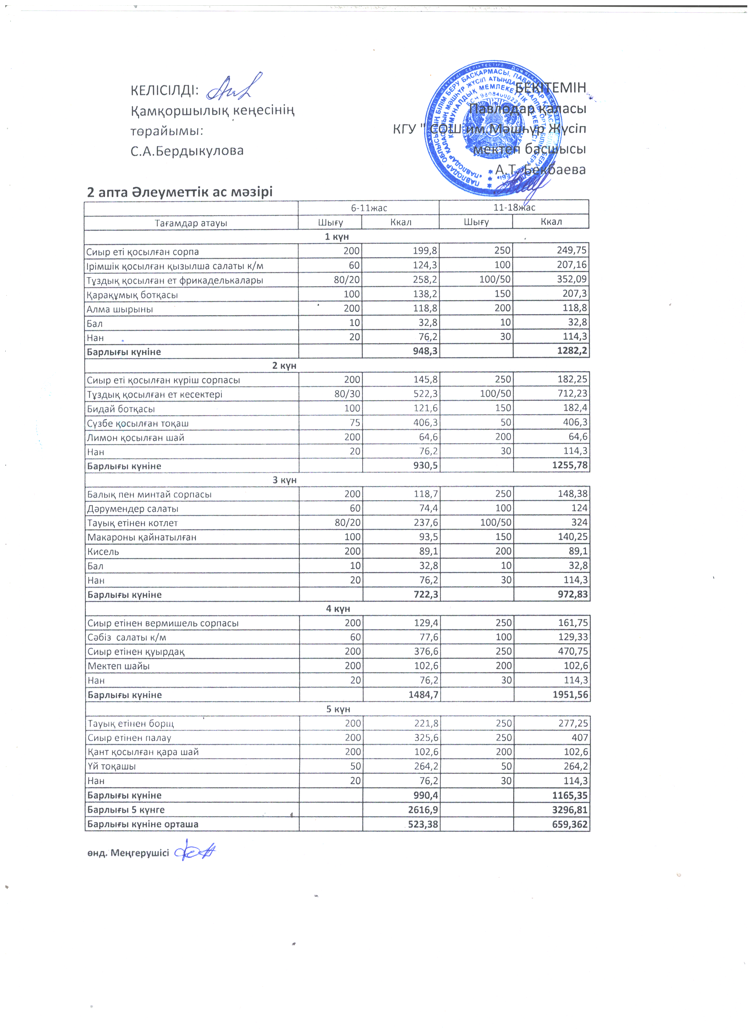 2023-2024 оқу жылына арналған әлеуметтік 2 апталық ас мәзірі