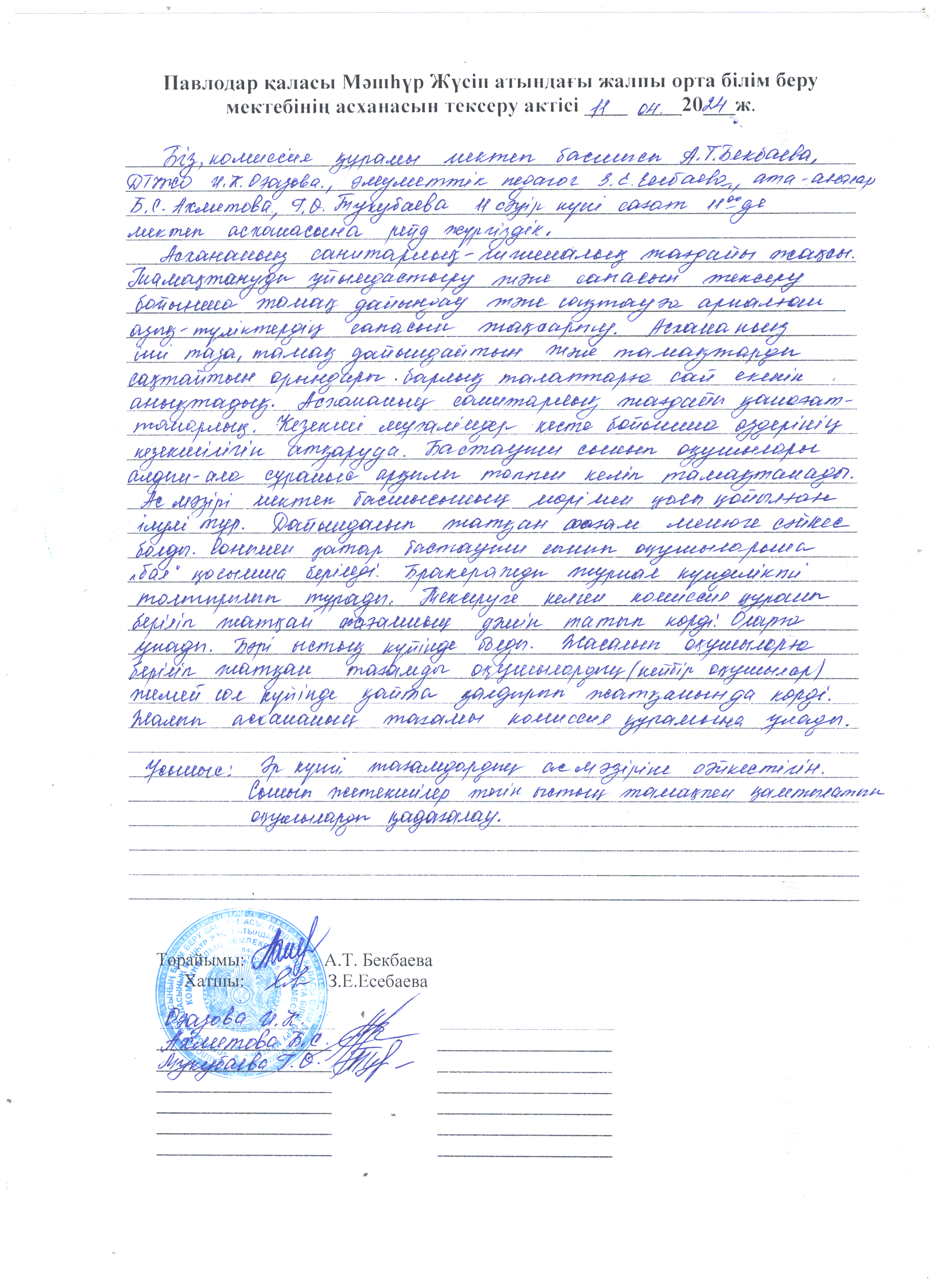 Акт на установку столовая
