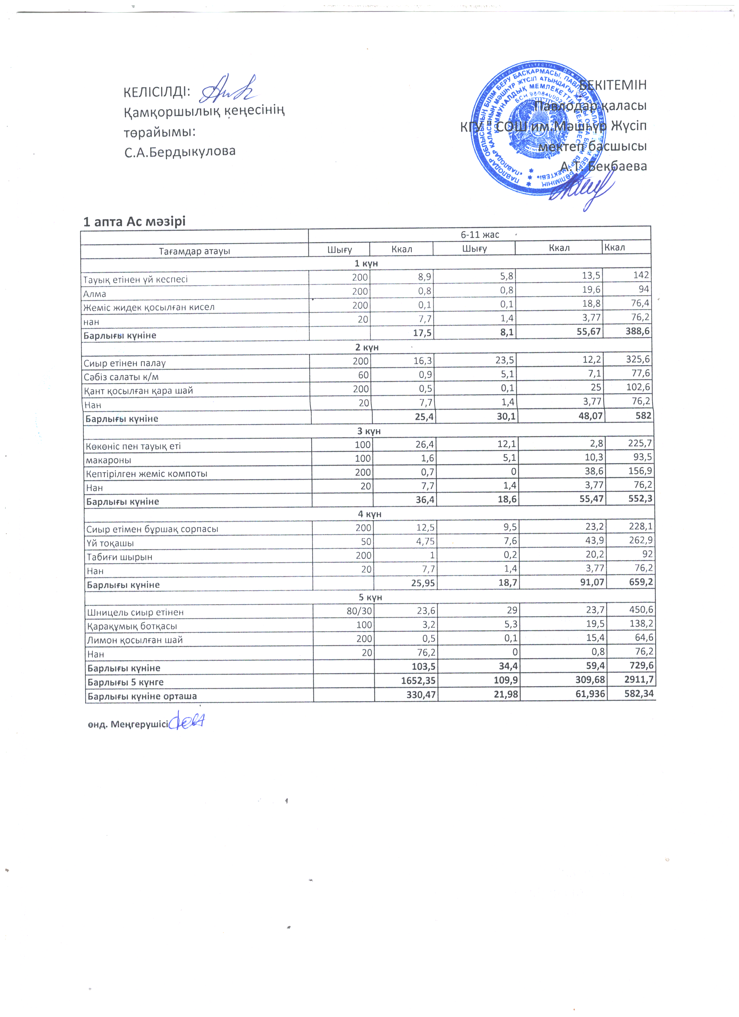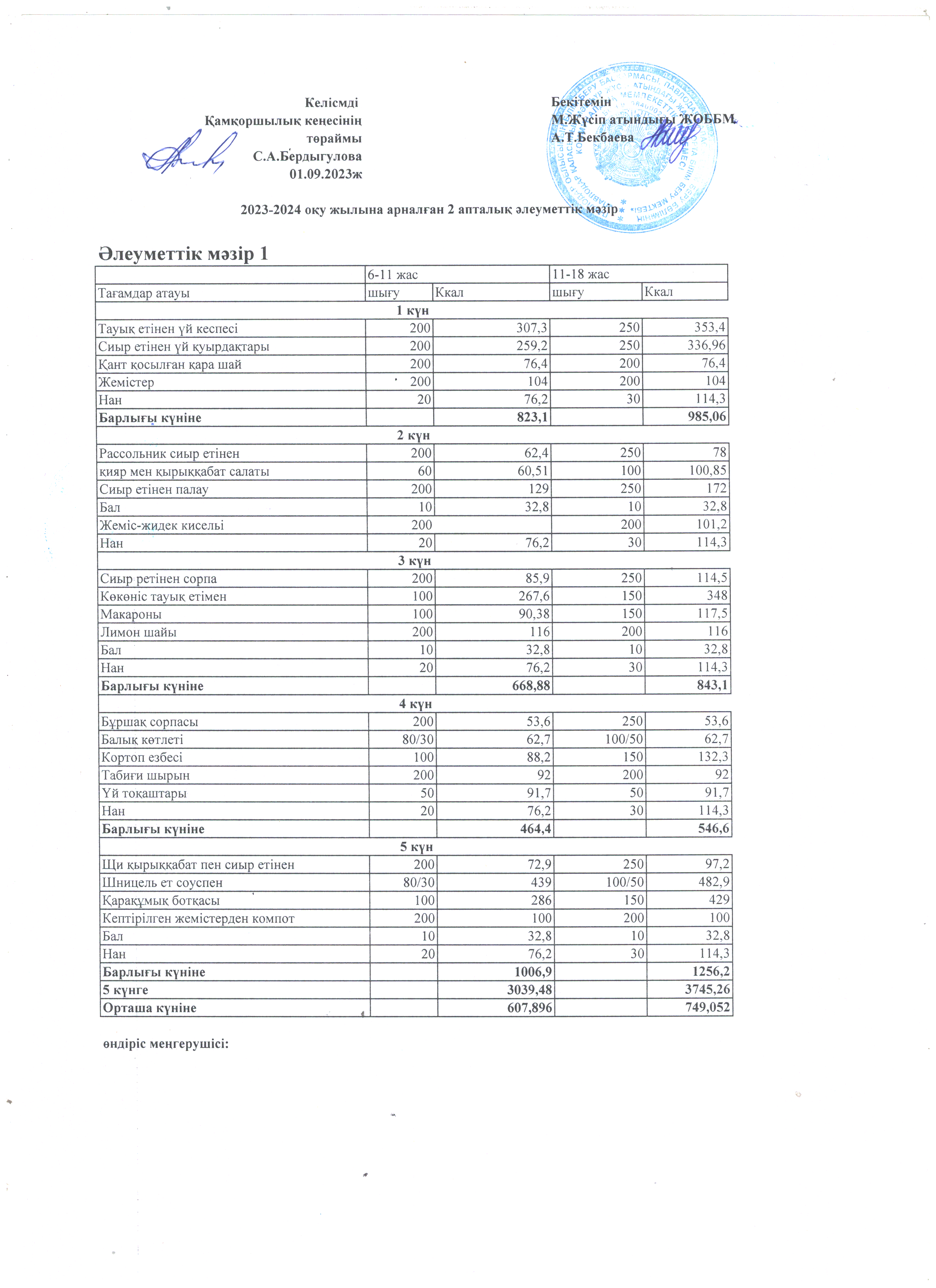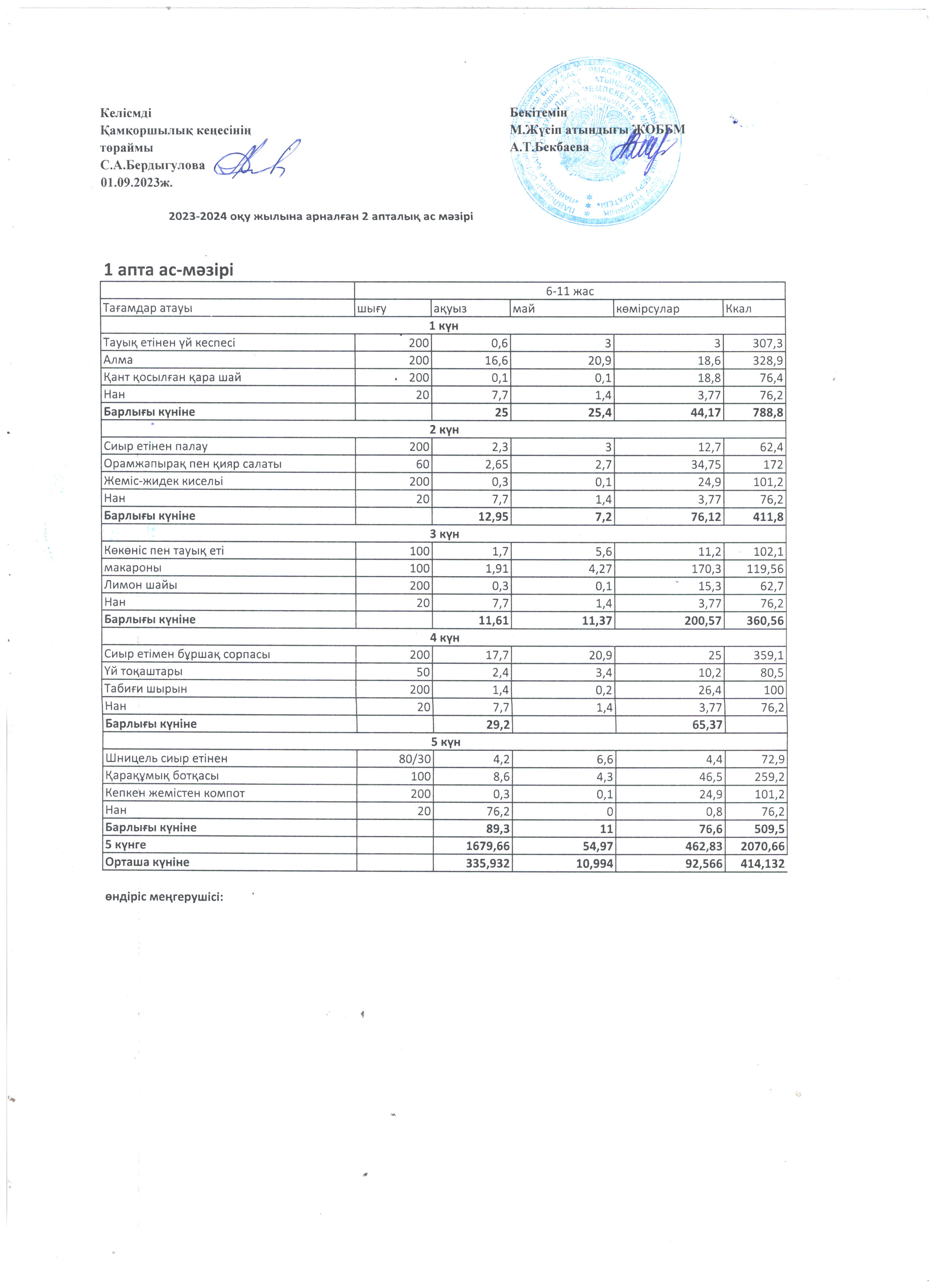 2023-2024 оқу жылына арналған 1 апталық ас мәзірі | Скачать |