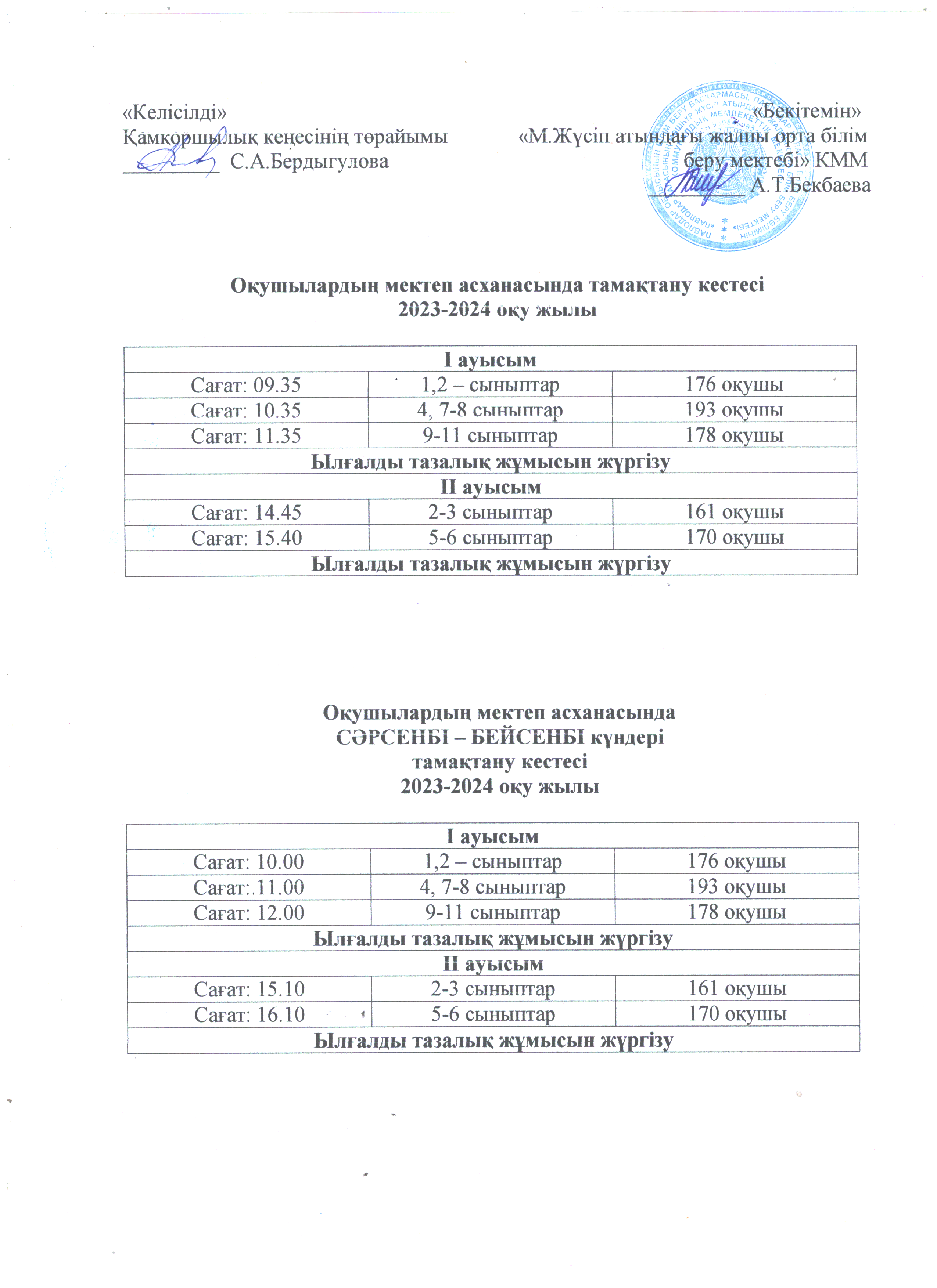 Оқушылардың мектеп аханасында тамақтану кестесі 2023-2024 оқу жылы | Скачать |