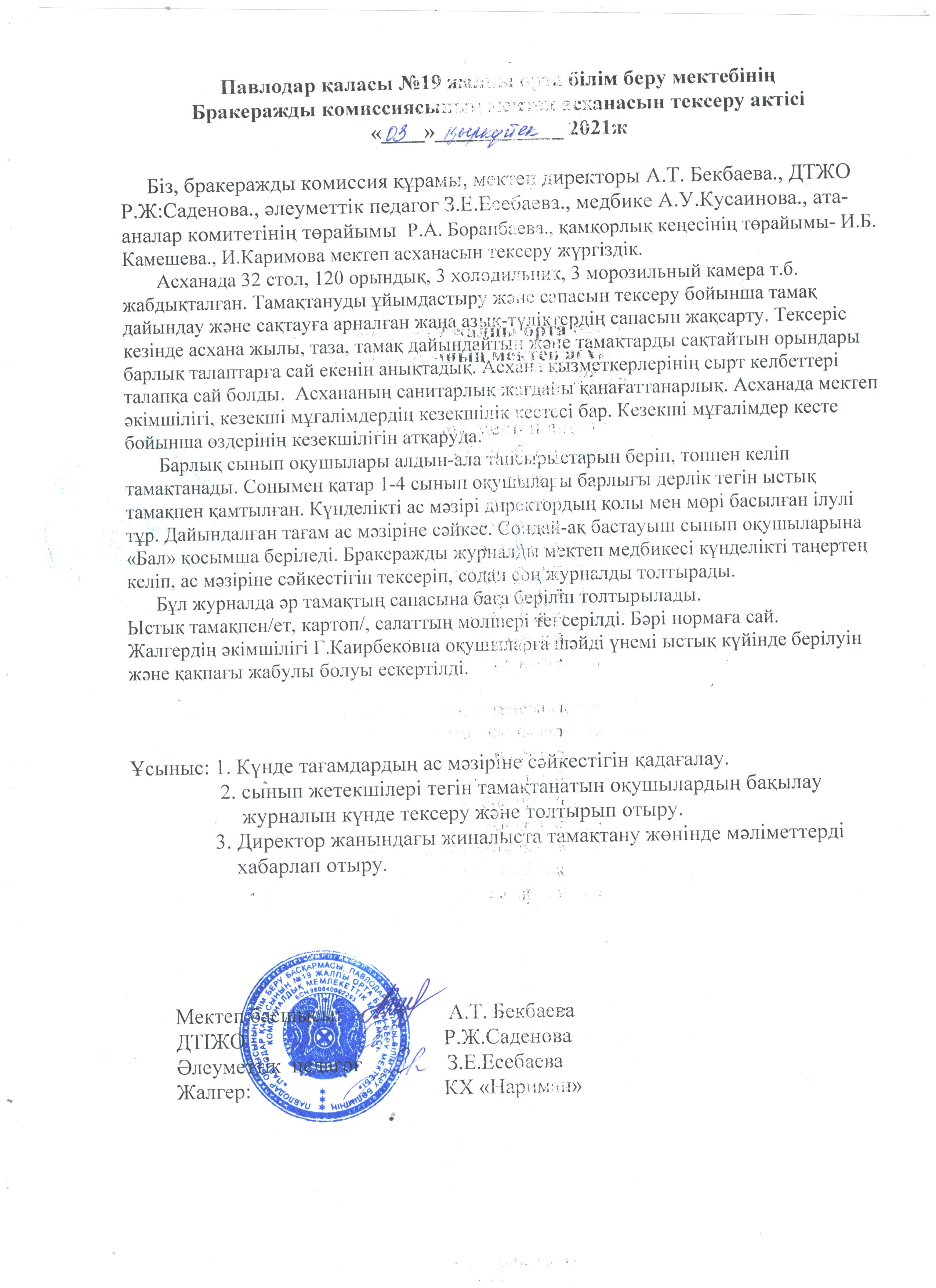 Мектеп асханасының мониторингісін жүргізу жөніндегі комиссияның отырысының №1 хаттамасы