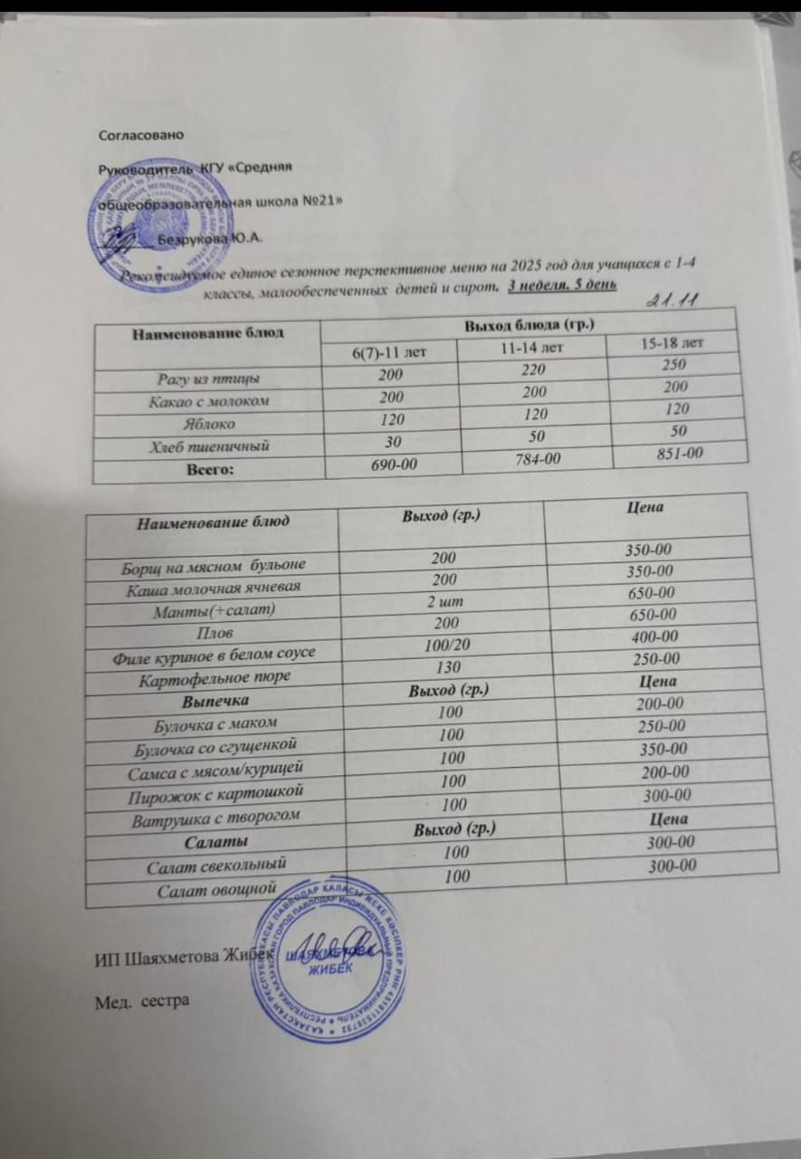 Рекомендуемое единое сезонное перспективное меню на 2025 год зима, весна