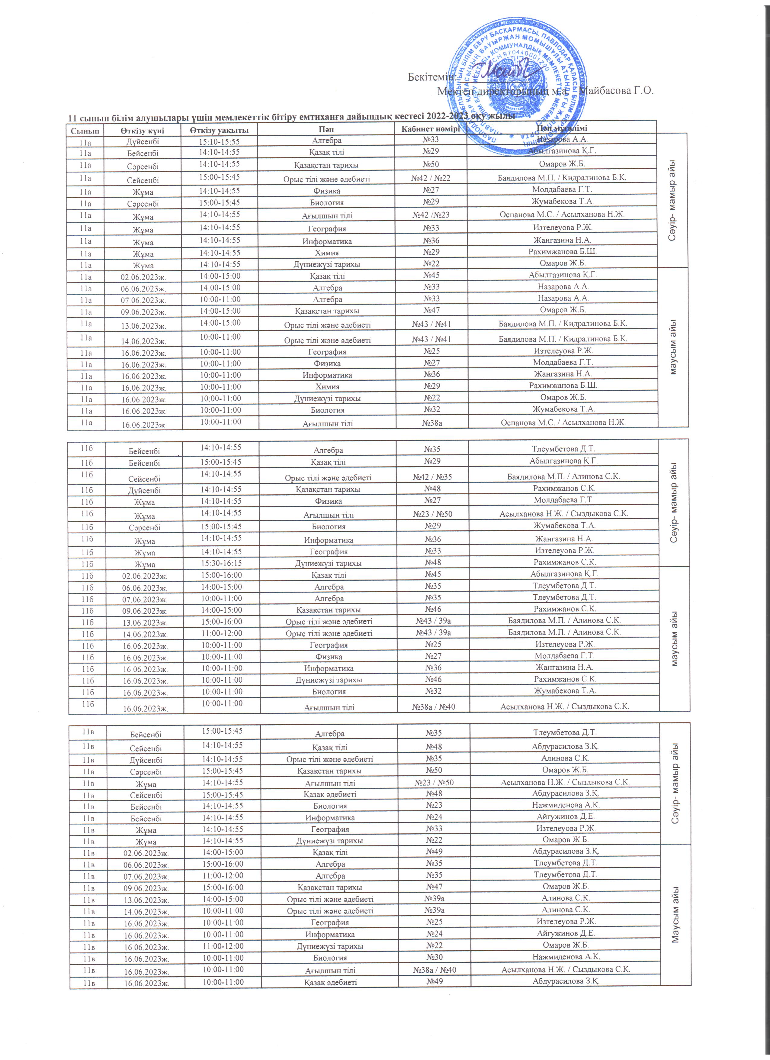 2022-2023 оқу жылына арналған 11-сыныптардағы мемлекеттік бітіру емтихандарының кестесі | Скачать |