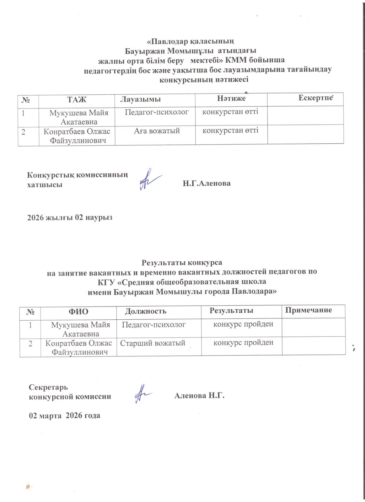 КГУ «Средняя общеобразовательная школа имени Бауыржана Момышулы города Павлодара» объявляет конкурс на должность педагога-психолога с казахским языком обучения (1 ставка). | Скачать Смотреть |
