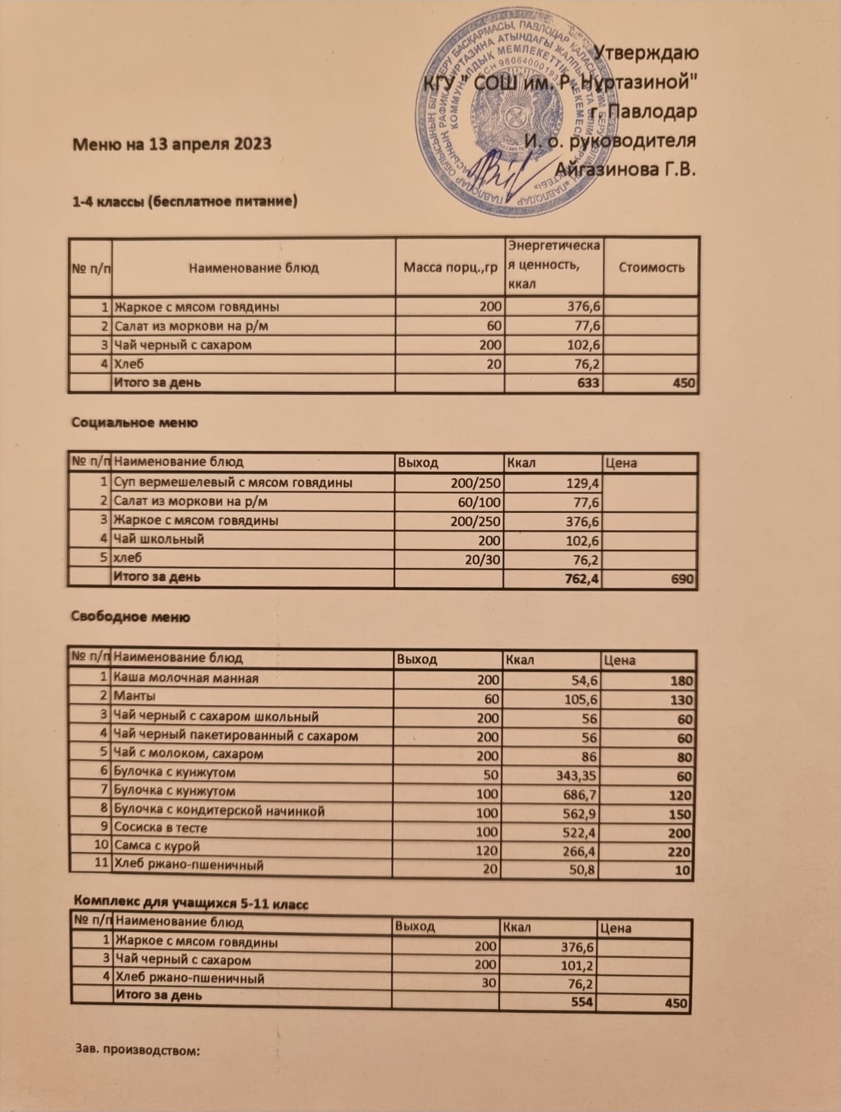 Меню на 13.04.2023
