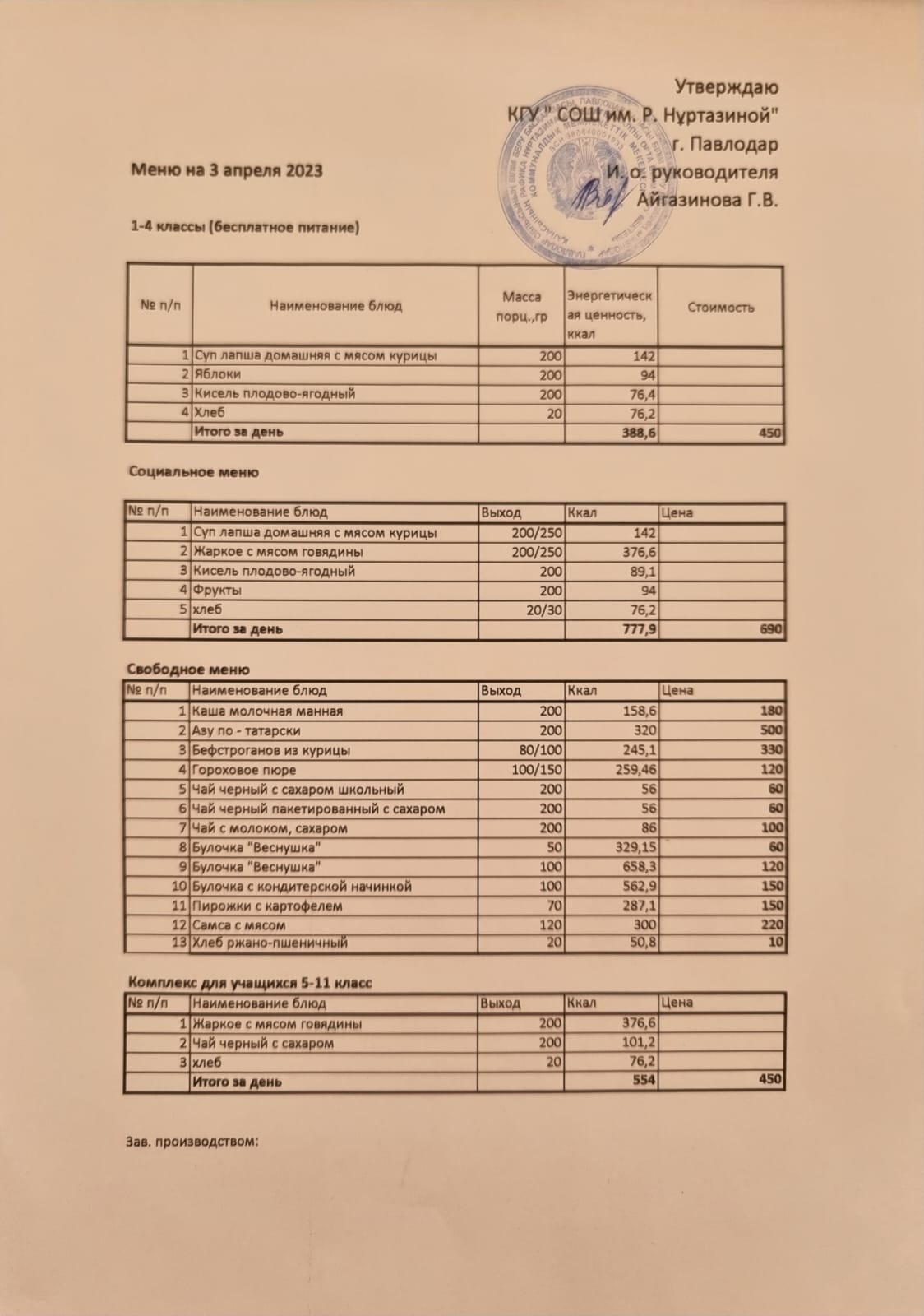 Меню на 03.04.2023