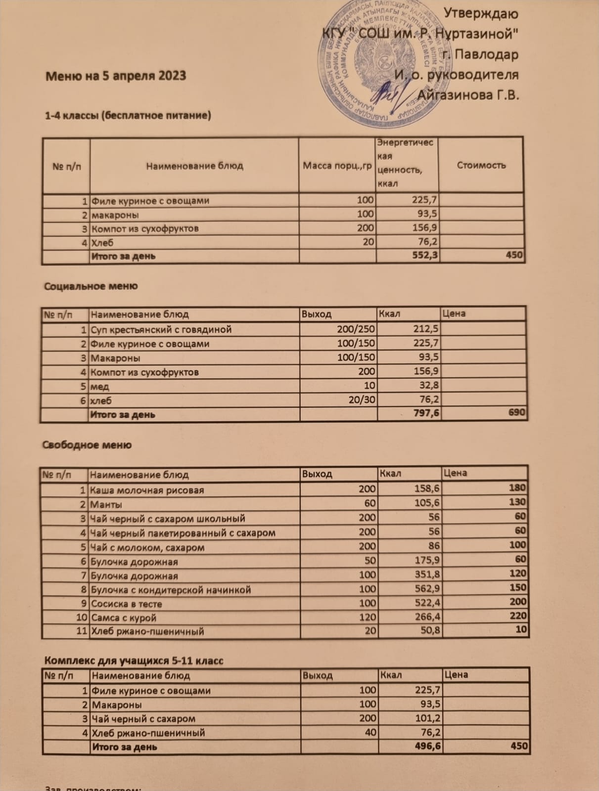 Меню на 05.04.2023
