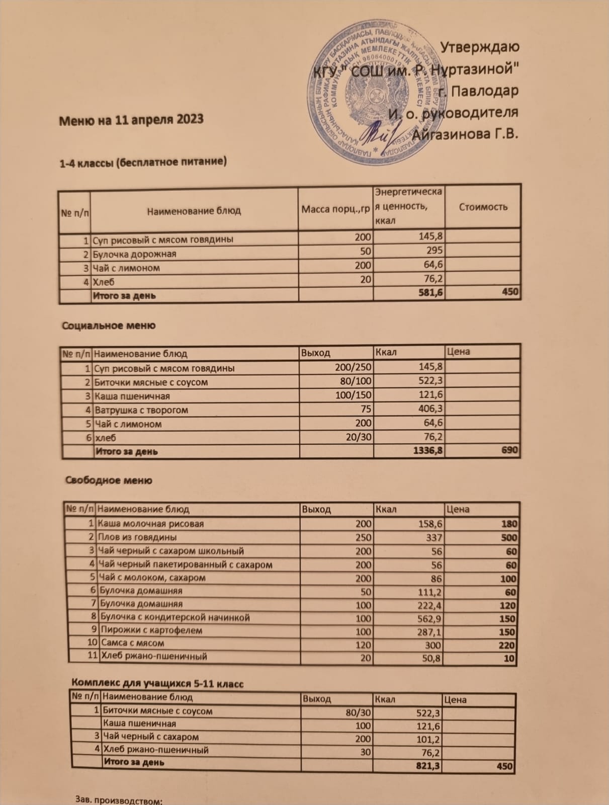 Меню на 11.04.2023