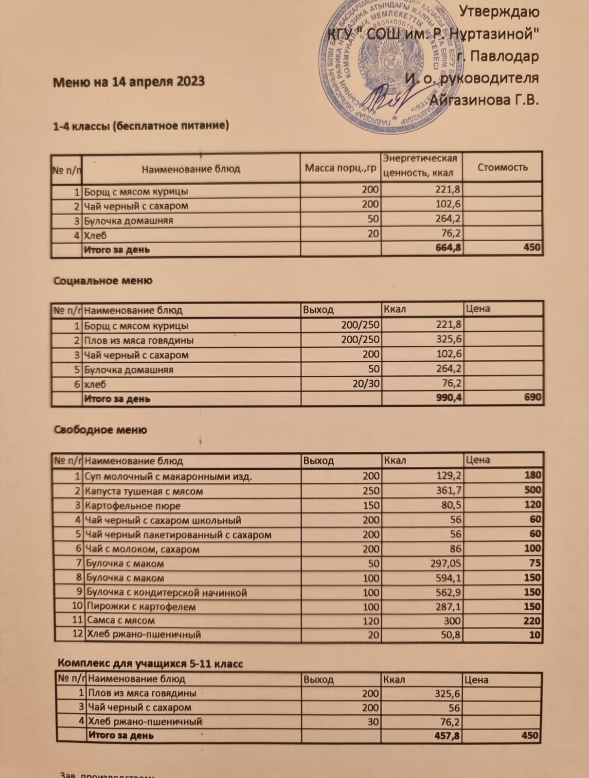 Меню на 14.04.2023
