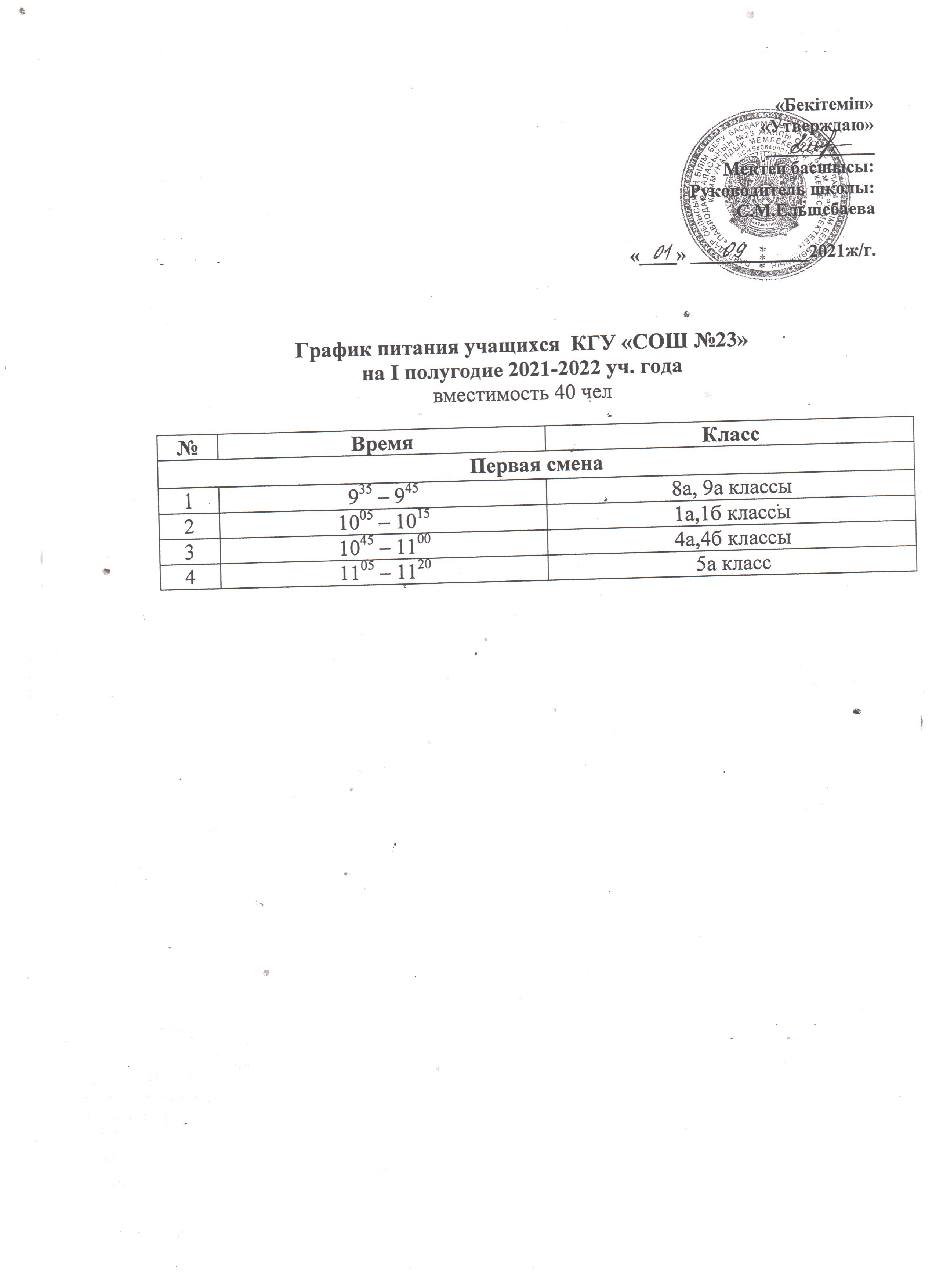 График питания учащихся на I полугодие 2021-2022 уч.год 1 смена