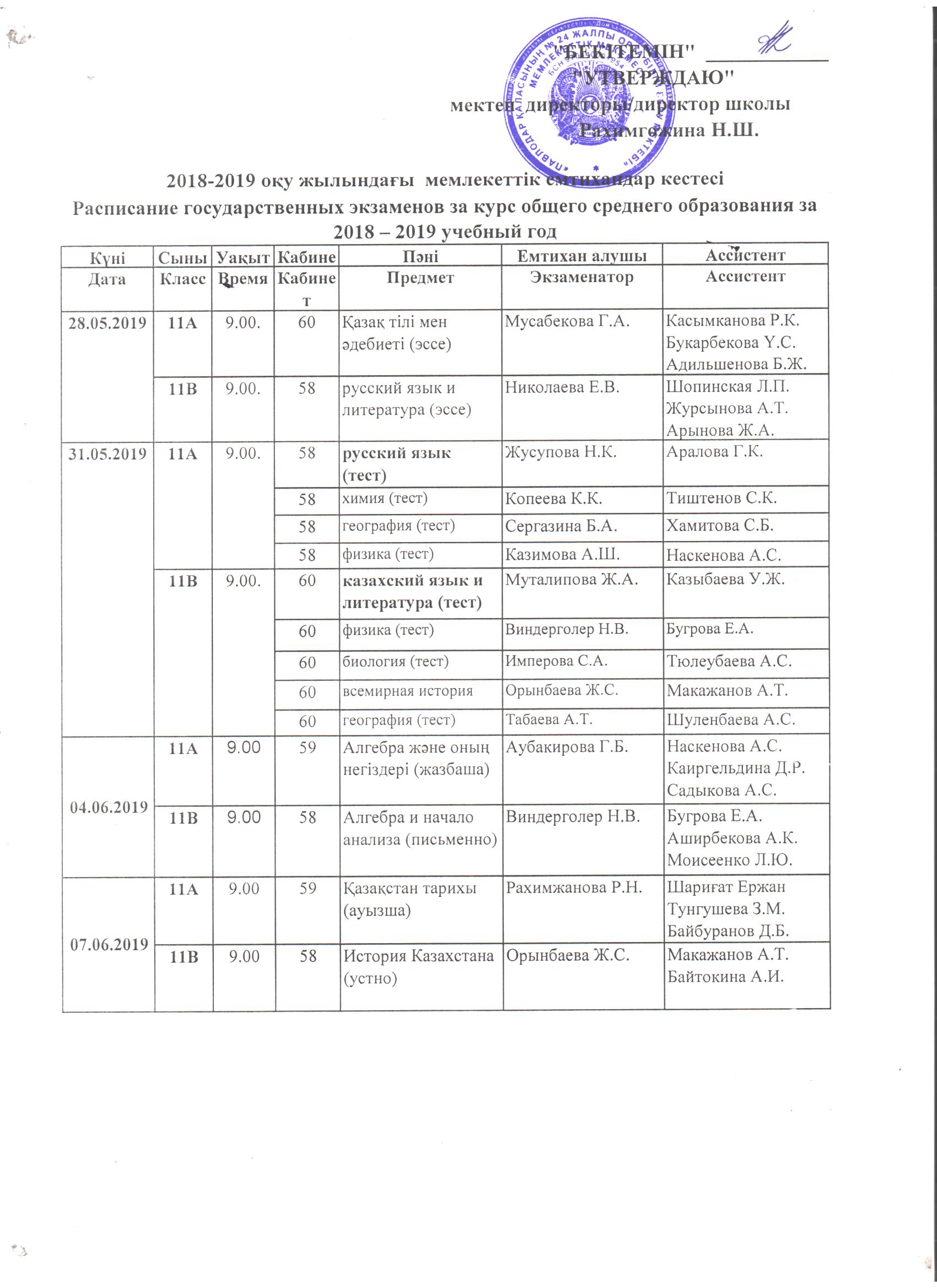 График государственных экзаменов 11 класс | көшіріп алу |