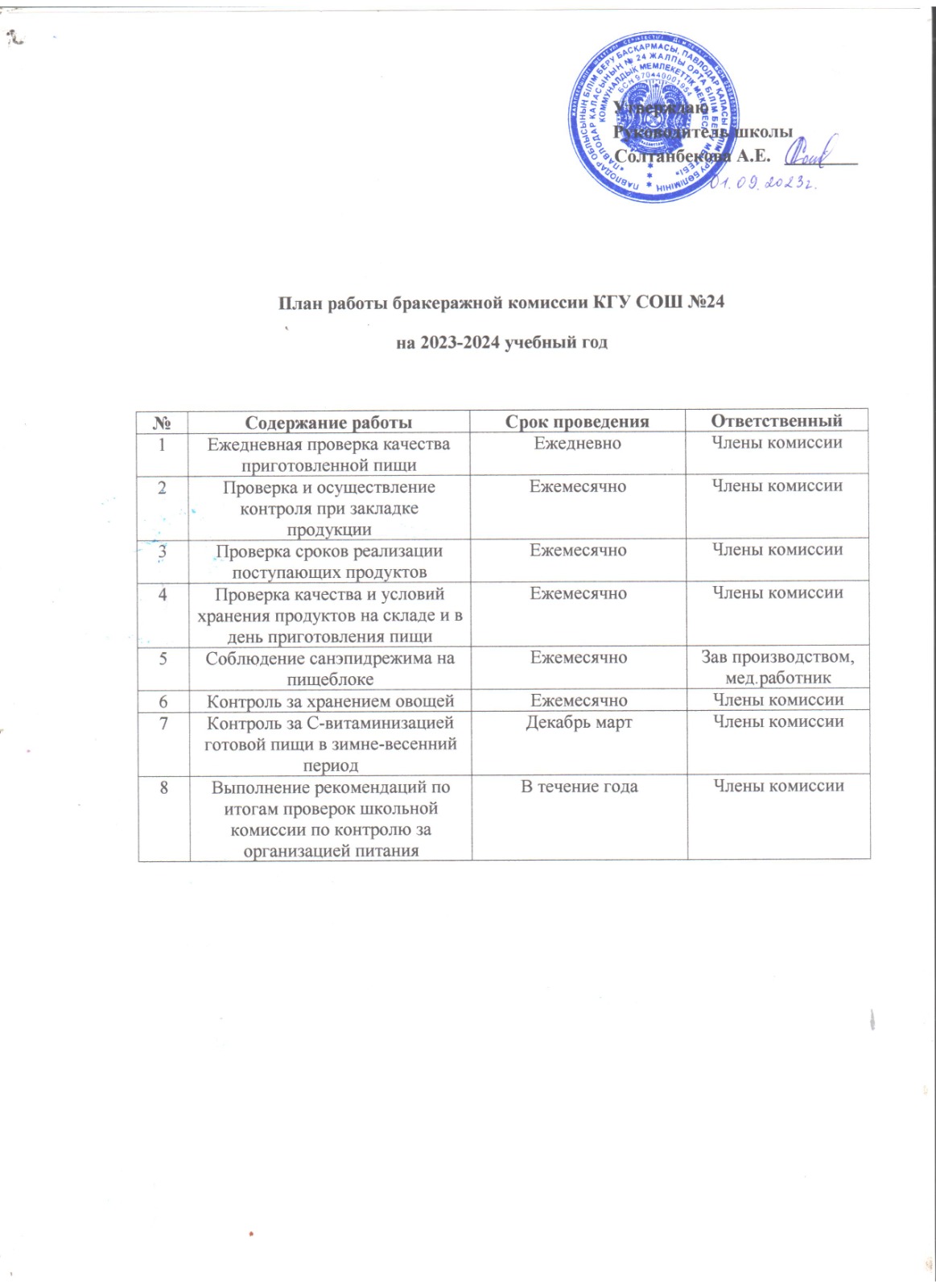 Павлодар қаласындағы № 24 КММ орта мектебінде 2023-2024 оқу жылына тамақтану мониторингі комиссиясын құру туралы бұйрық | Скачать |
