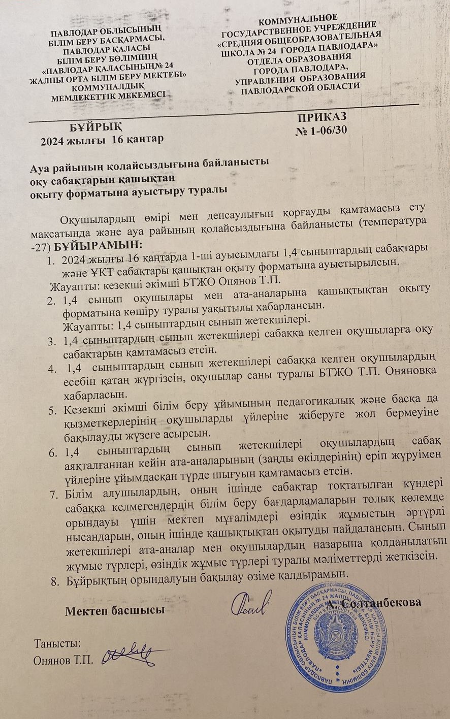 Бұйрық №1-06/30 16.01.2024 1 аусым