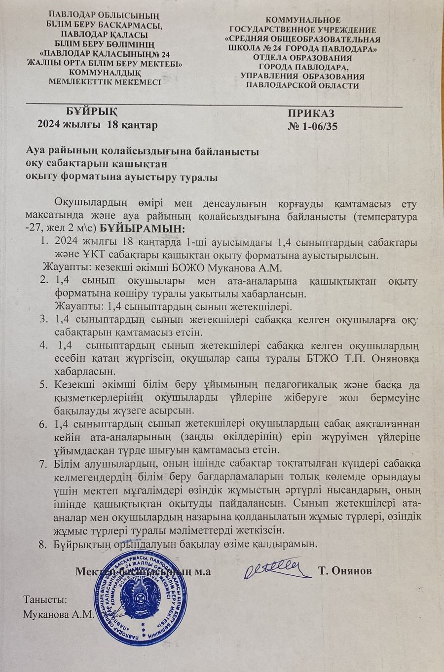Бұйрық №1-06/35 18.01.2024 1 аусым | Скачать |