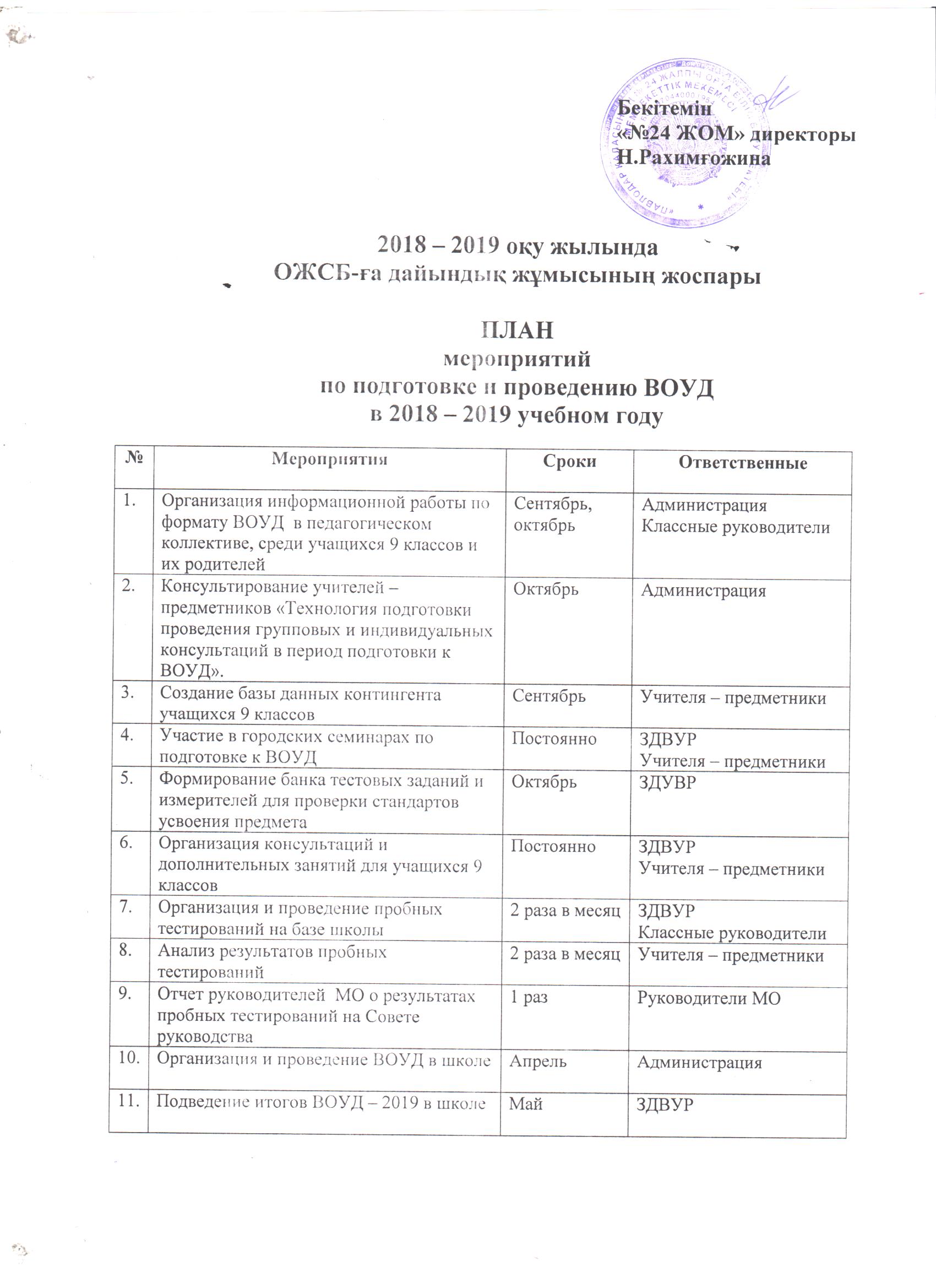 План по подготовке и организации ЕНТ по ГУ СОШ №24 города Павлодара