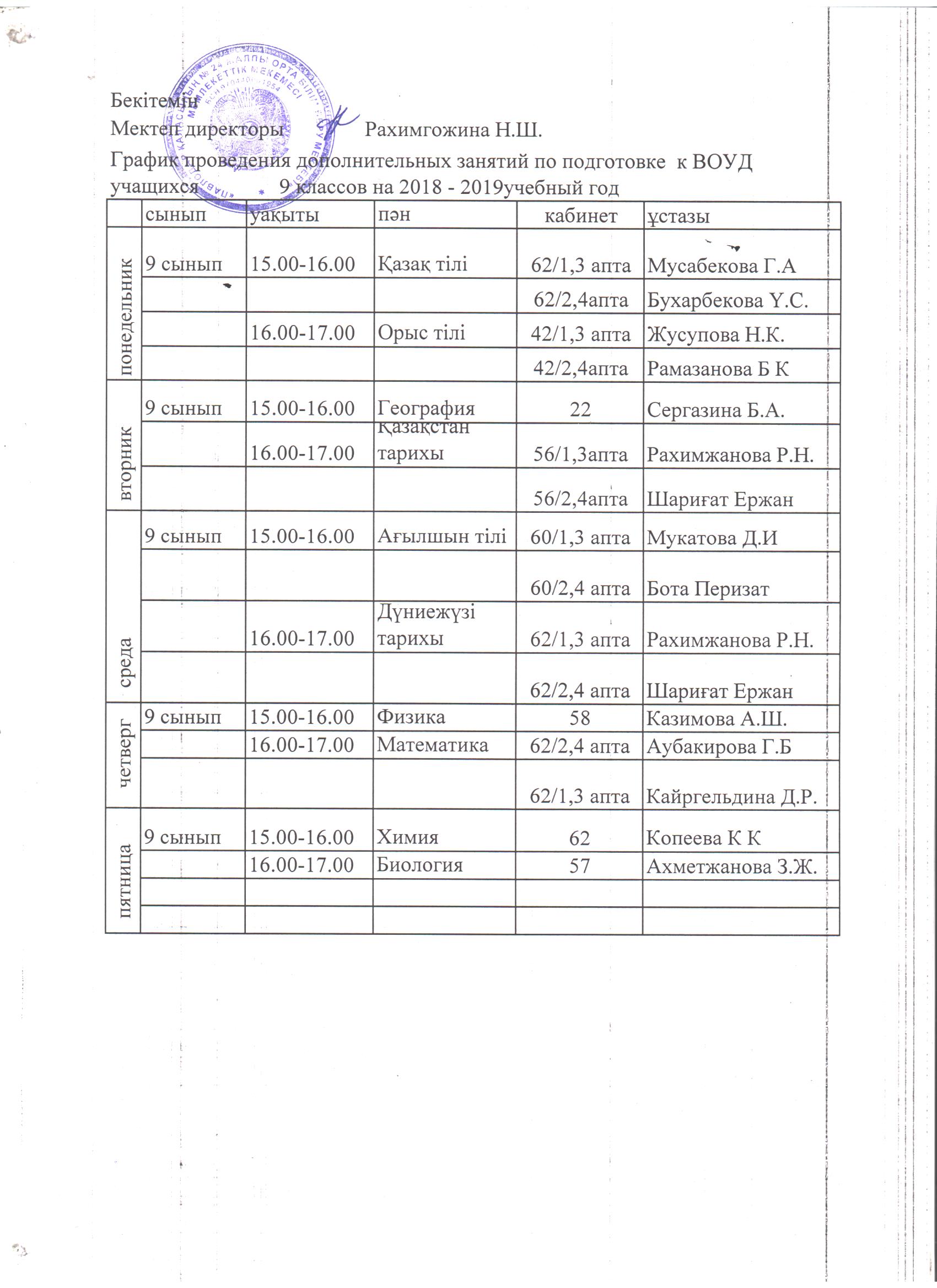 График проведения дополнительных занятий по подготовке к ВОУД учащихся 9-х классов на 2018-2019 уч.год