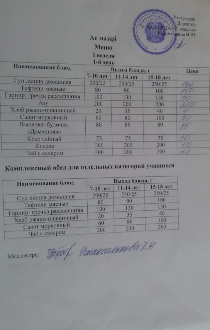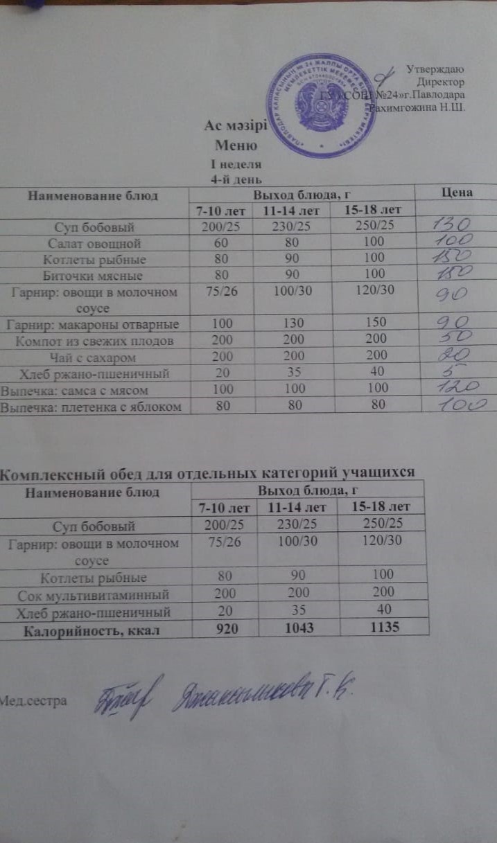 Меню 1 неделя 4 день
