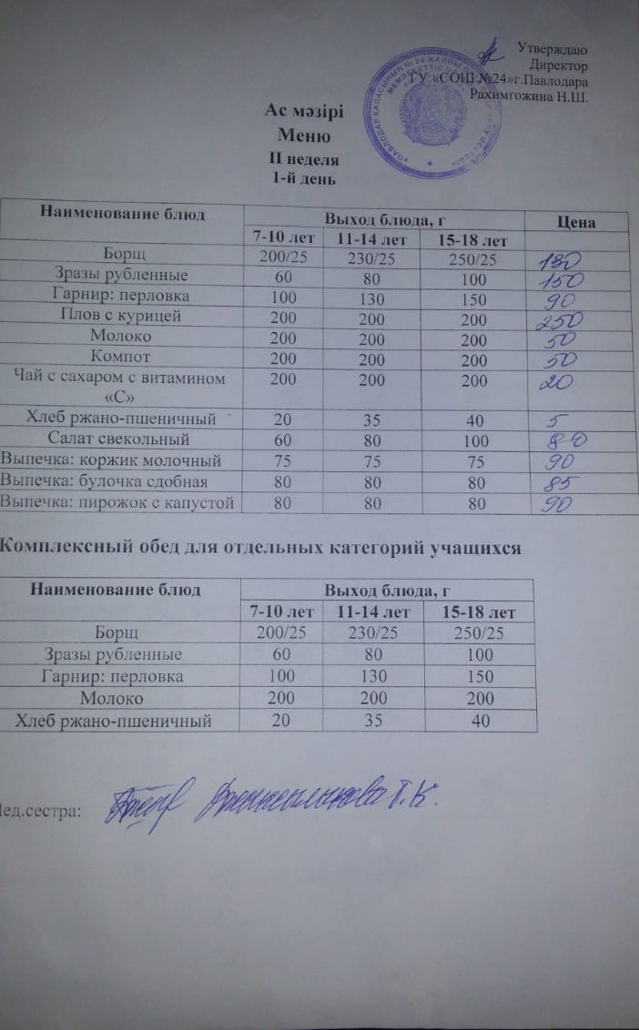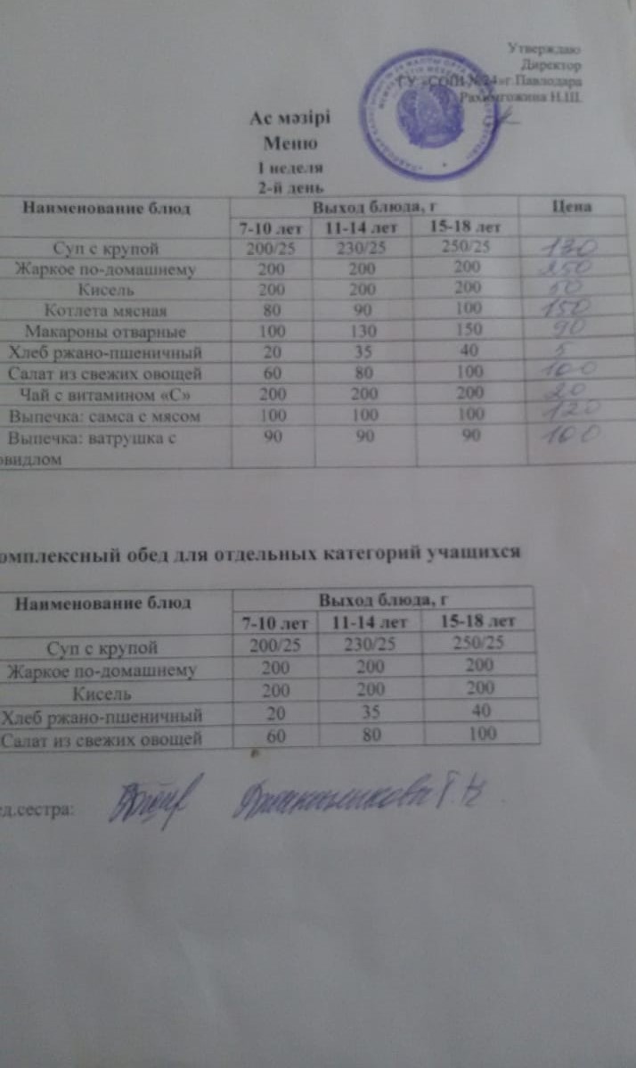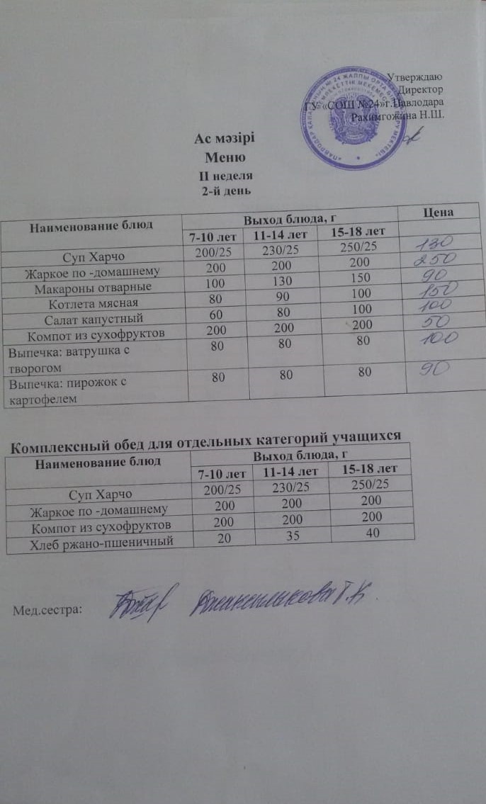 Меню 2 неделя 2 день