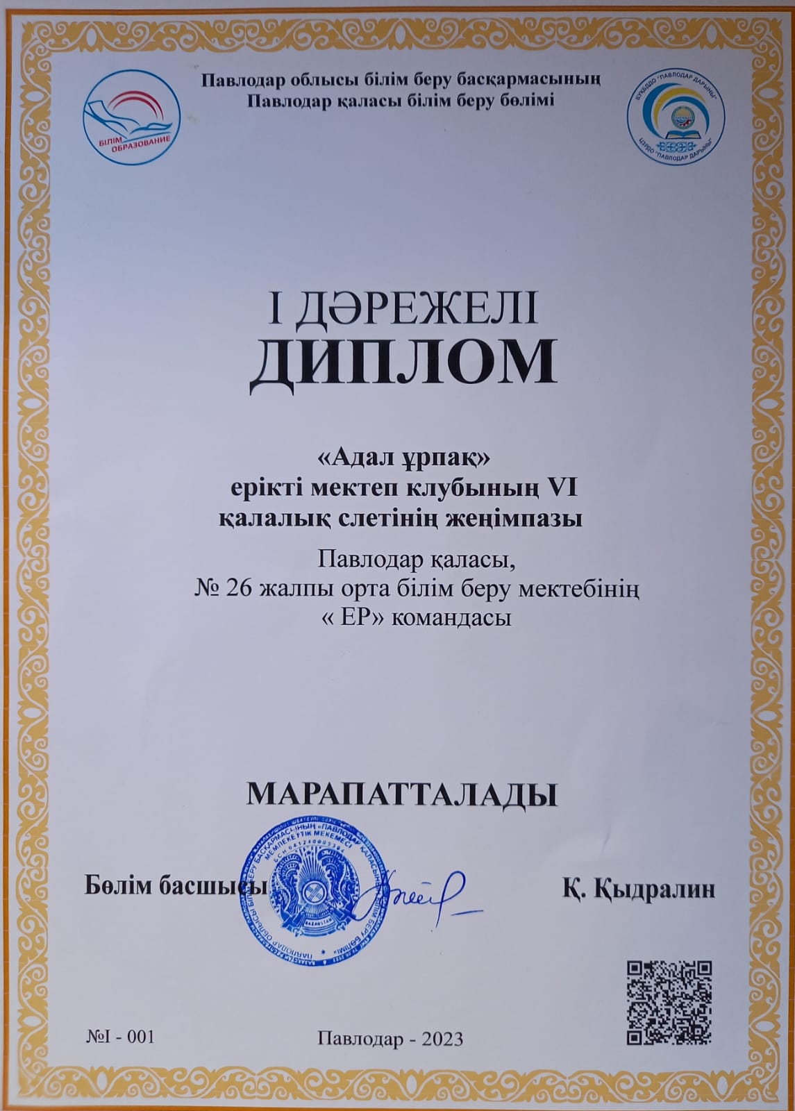 I место в городском этапе VI областного Слета добровольных клубов «Адал ұрпақ» | Скачать |