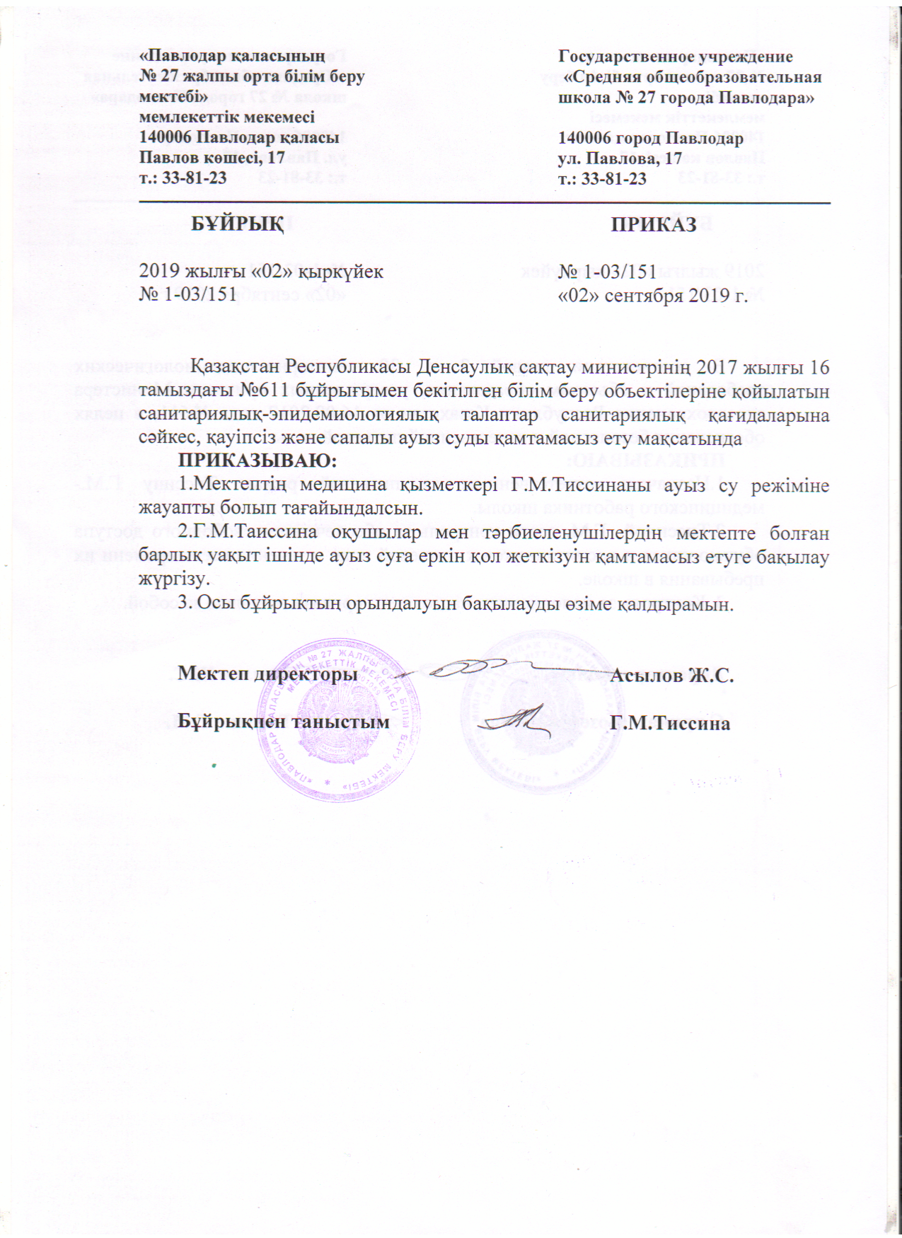 - Психологиялық қызметті құру туралы 1.09.2022 жылғы бұйрық