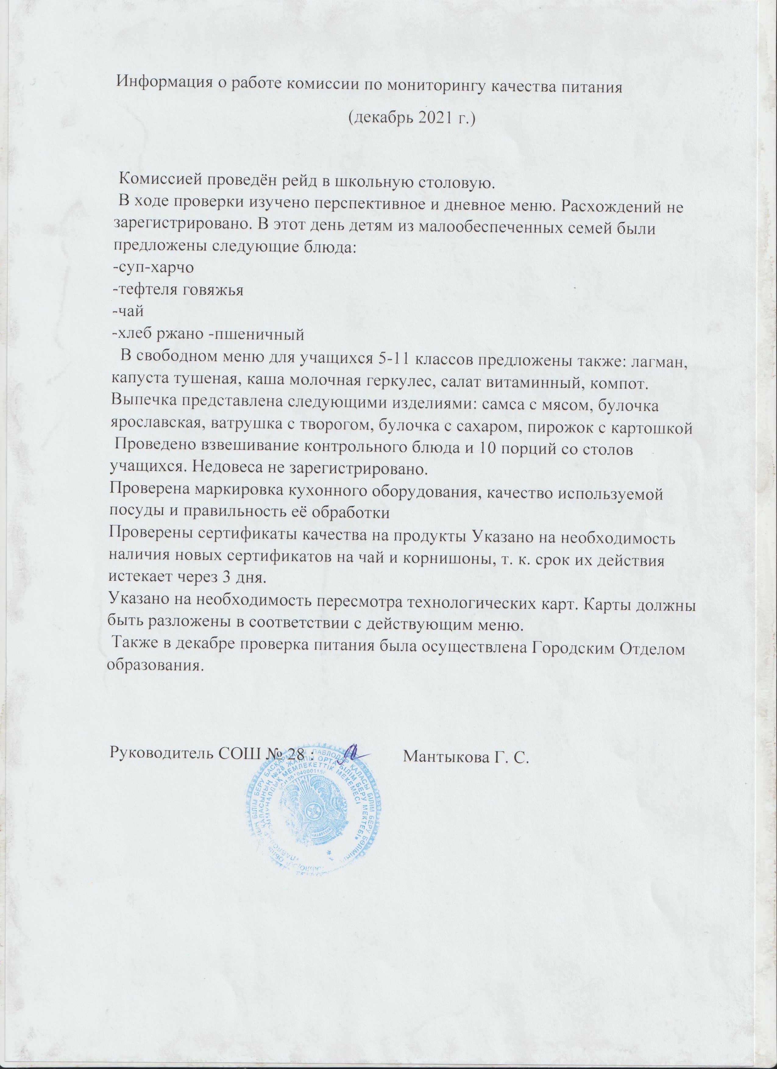 Информация о работе комиссии по мониторингу качества питания (декабрь 2021) | Скачать |