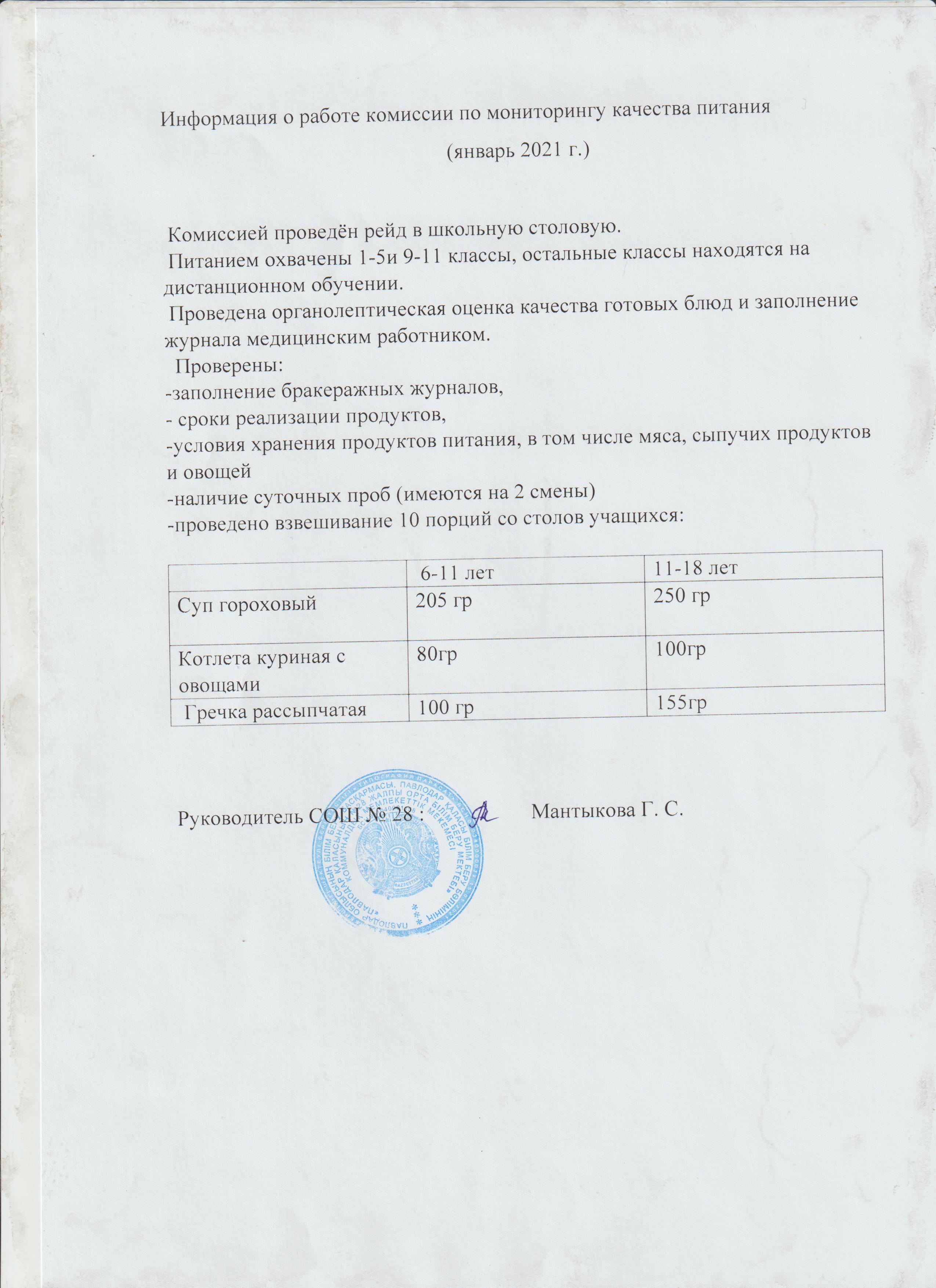 Информация о работе комиссии по мониторингу качества питания (январь 2022) | Скачать |
