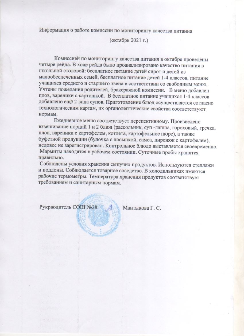 Информация о работе комиссии по мониторингу качества питания (октябрь 2021г) | Скачать |