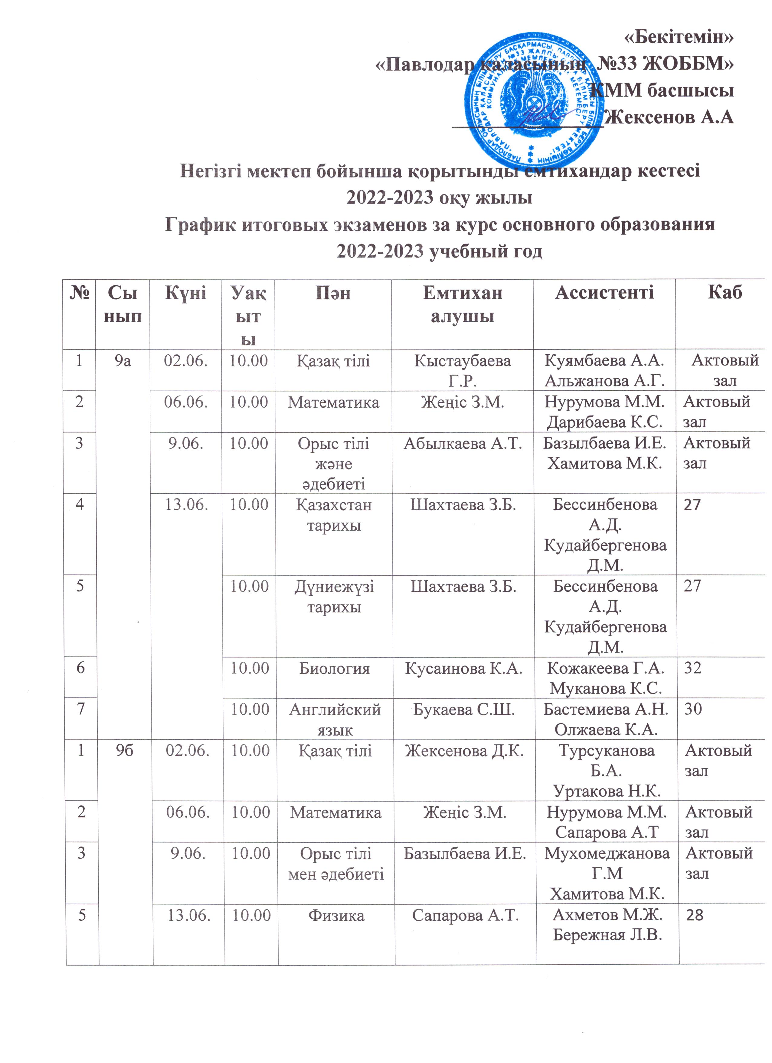 КГУ "СОШ №33 города Павлодара" план мероприятий по организованному завершению 2022-2023 учебного года | Скачать Смотреть |