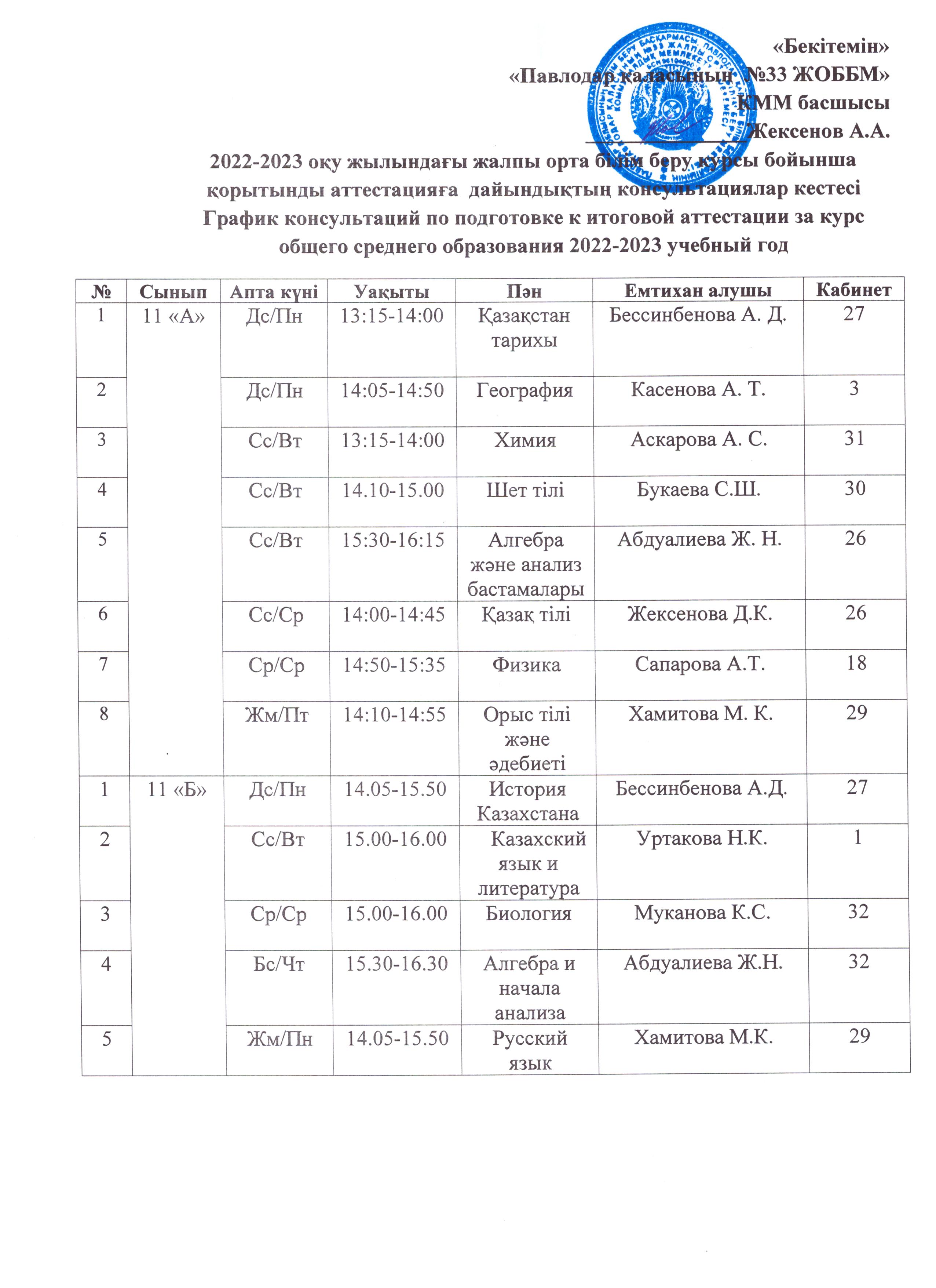 Расписание консультаций для учащихся 11 классов по подготовке к итоговой аттестации и ЕНТ на 2023-2024 учебный год | Скачать Смотреть |