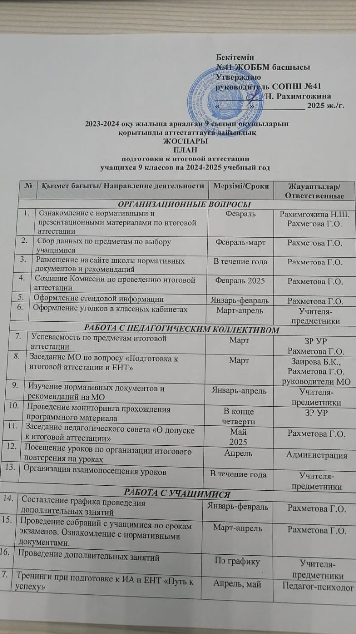 План подготовки к итоговой аттестации и ЕНТ - 2025 учащихся выпускных классов на 2024-2025 учебный год | Скачать |