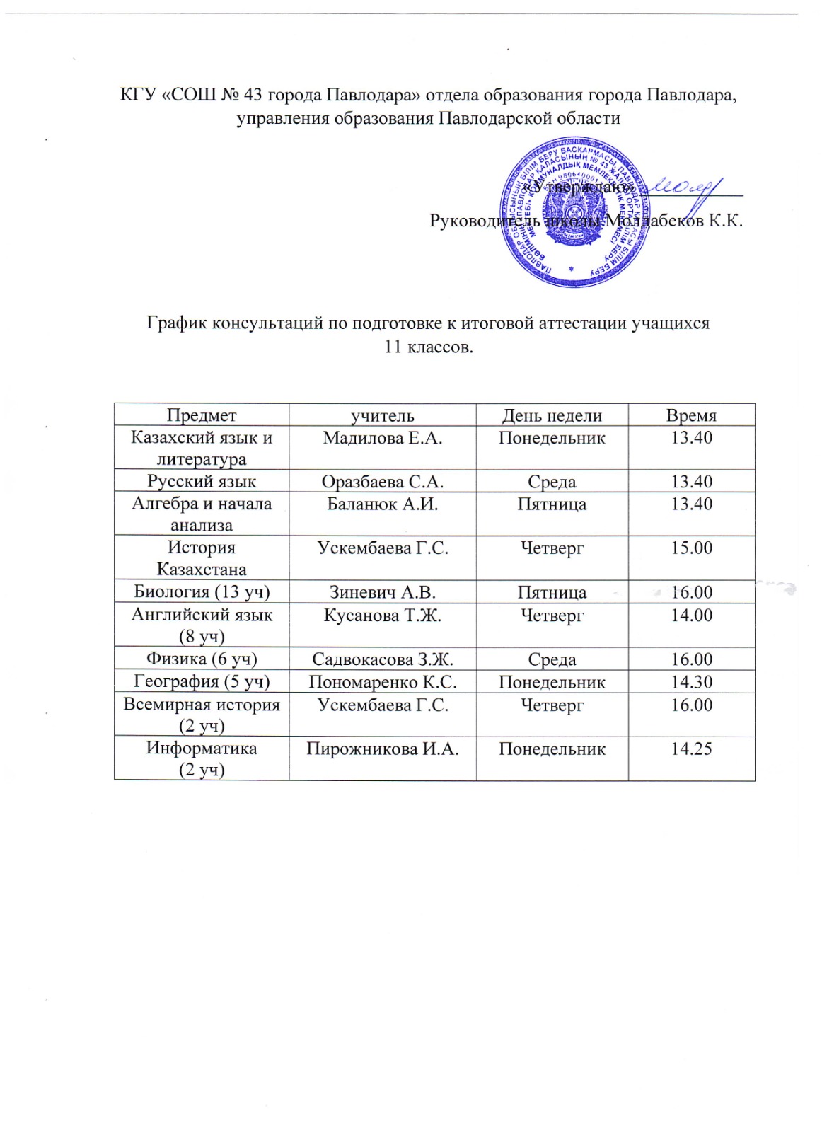 График консультаций по подготовке к итоговой аттестации учащихся 11 классов на осенних каникулах | Скачать |