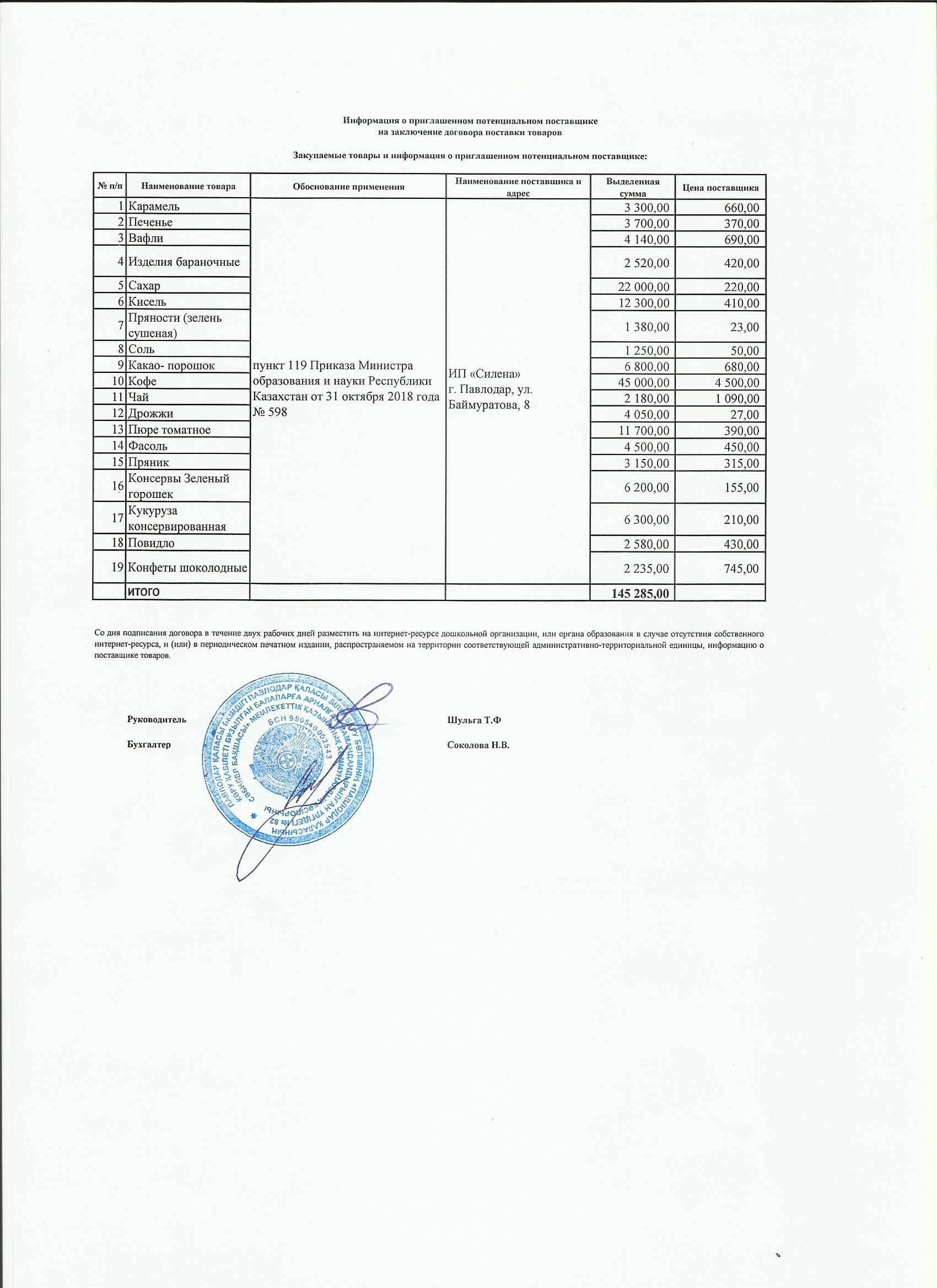 Информация о приглашенном поставщике ИП Силена 4 кв 2019 | көшіріп алу |