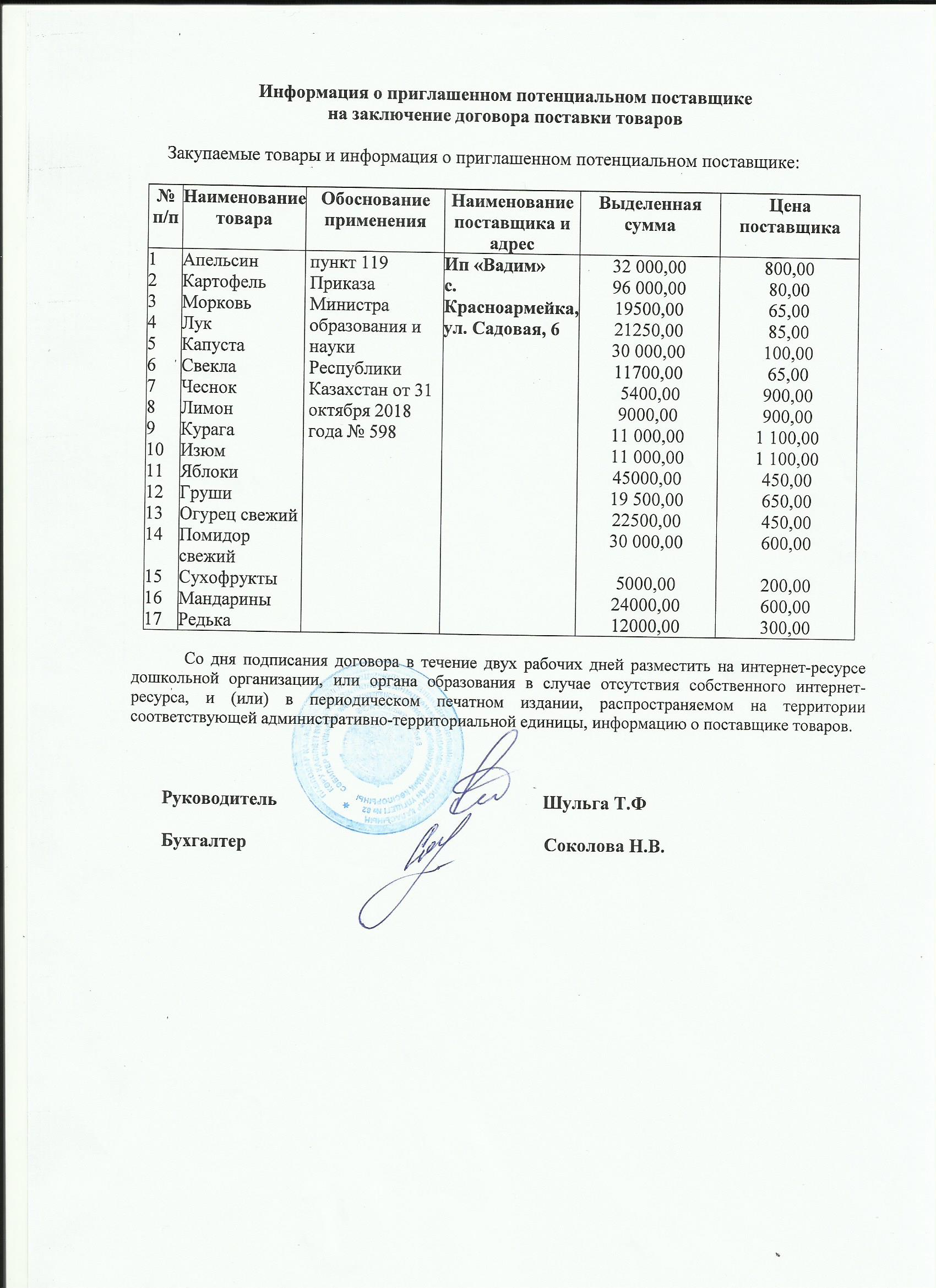 Информация о приглашенном поставщике овощи, фрукты 03.07.19 | көшіріп алу |