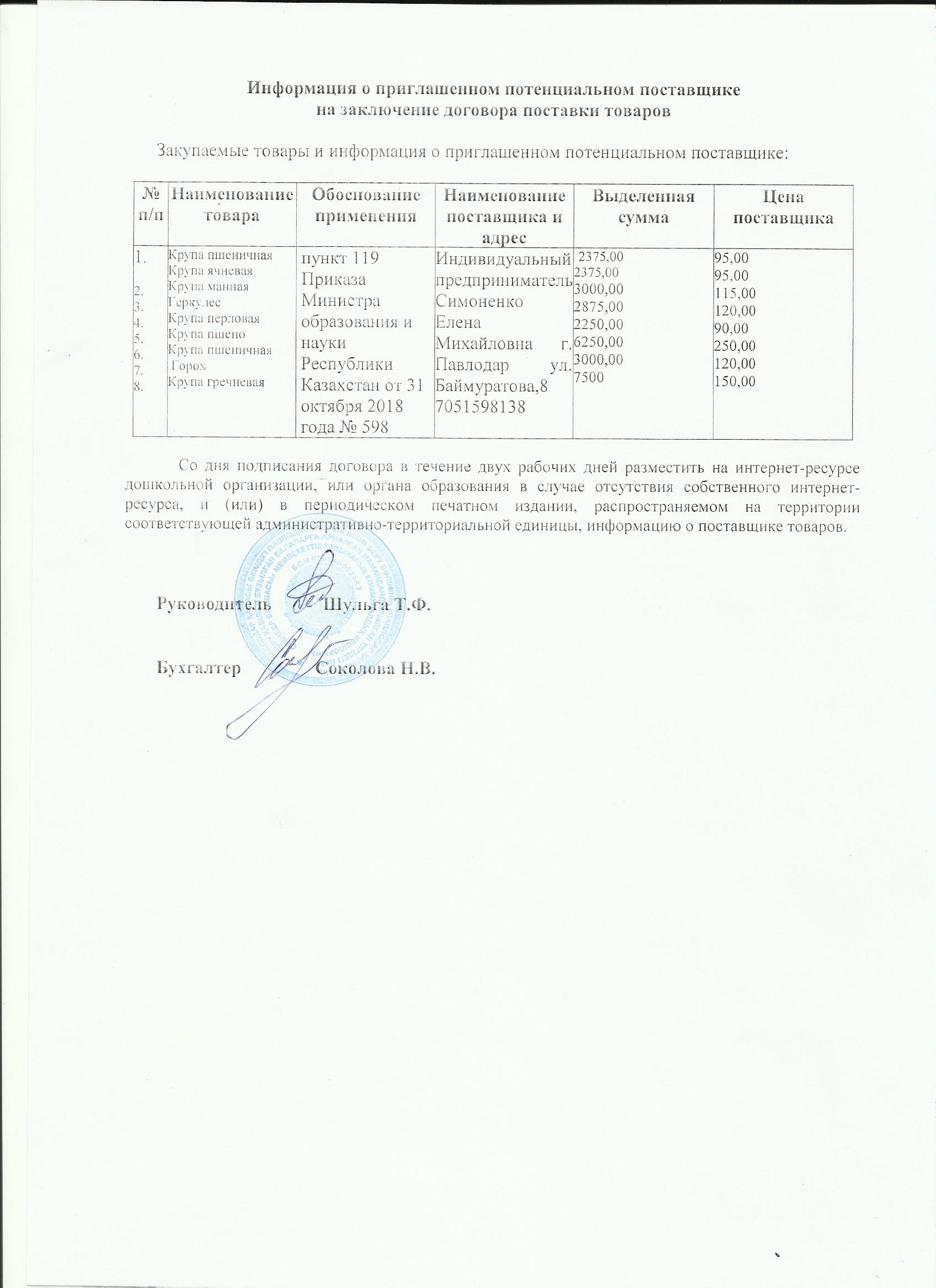 Информация о приглашенном поставщике крупы 02.07.19 | көшіріп алу |