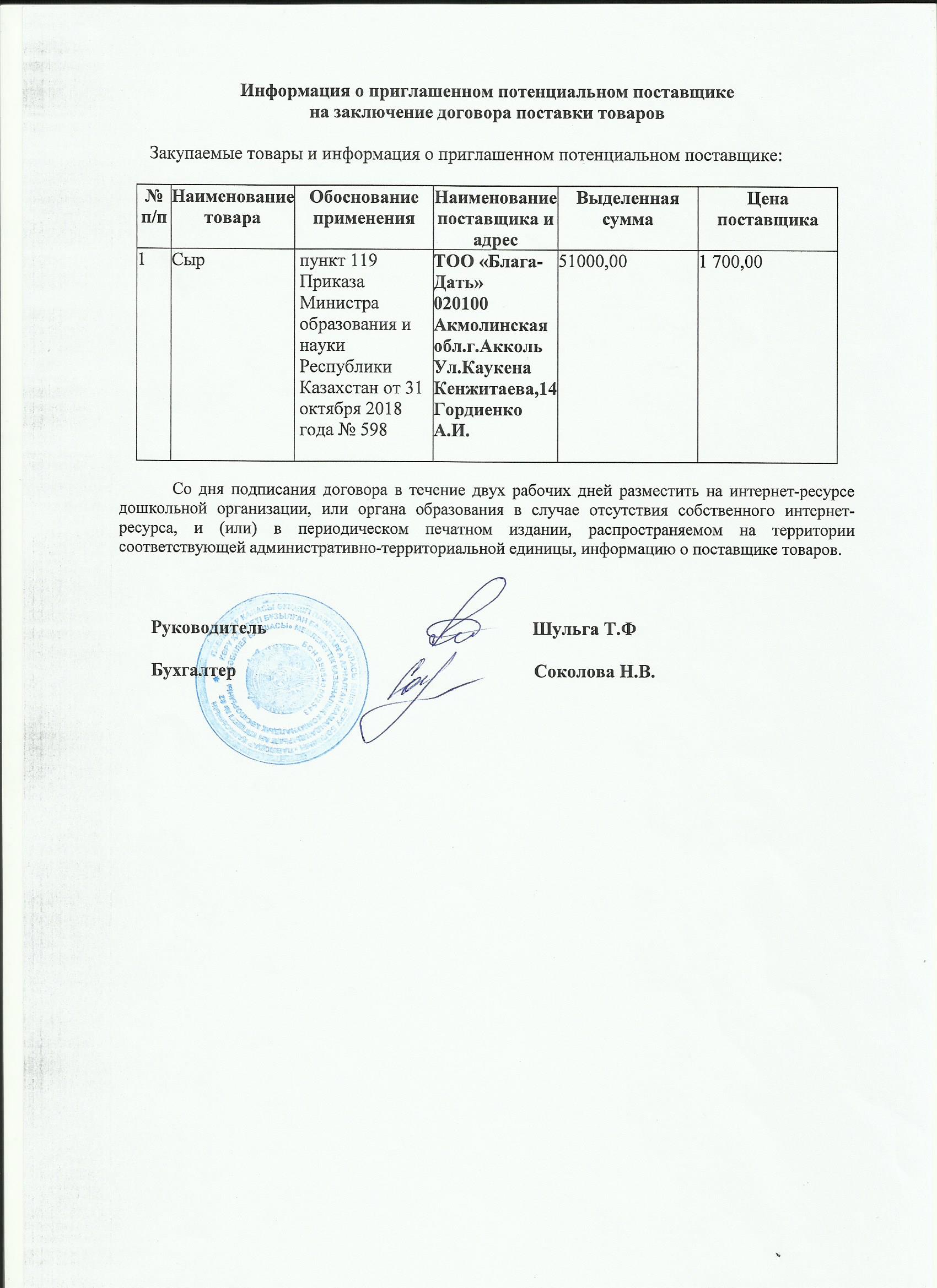 Информация о приглашенном поставщике сыра 02.07.19 | көшіріп алу |