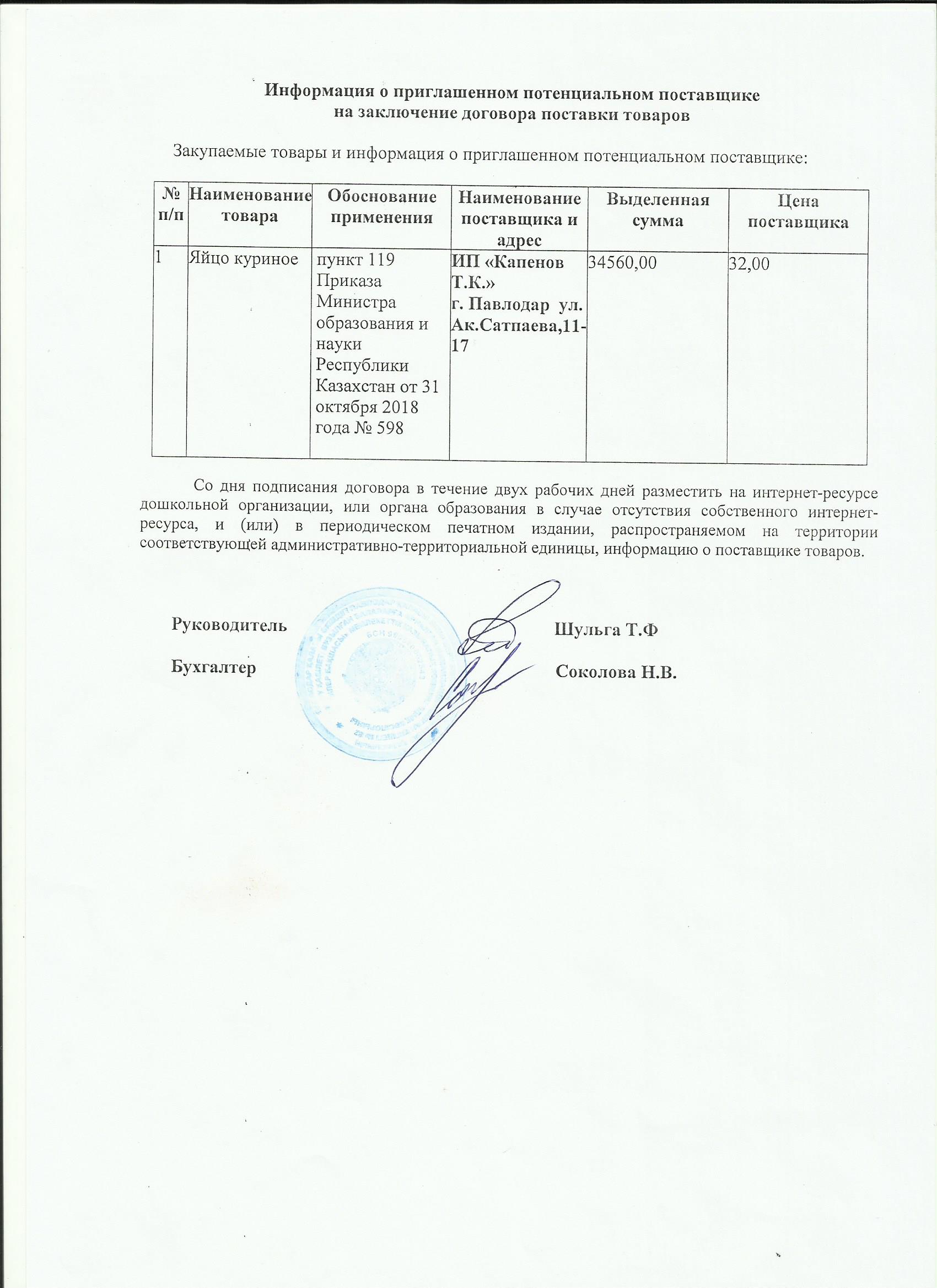 Информация о приглашенном поставщике ИП "Капенов" (яйцо куриное) 05.06.20 | көшіріп алу |