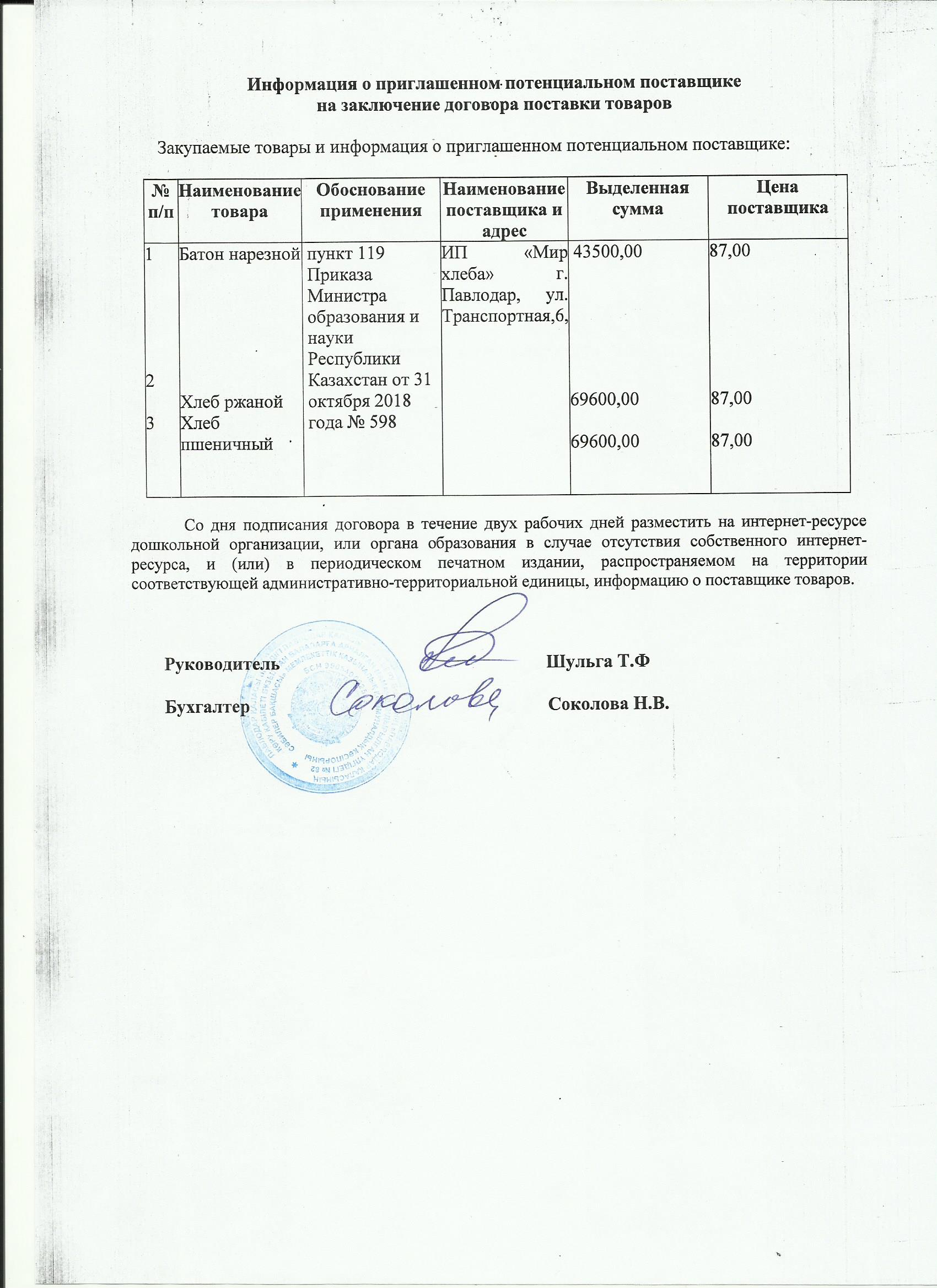 Информация о приглашенном поставщике ИП Мир хлеба 2 кв. 2020