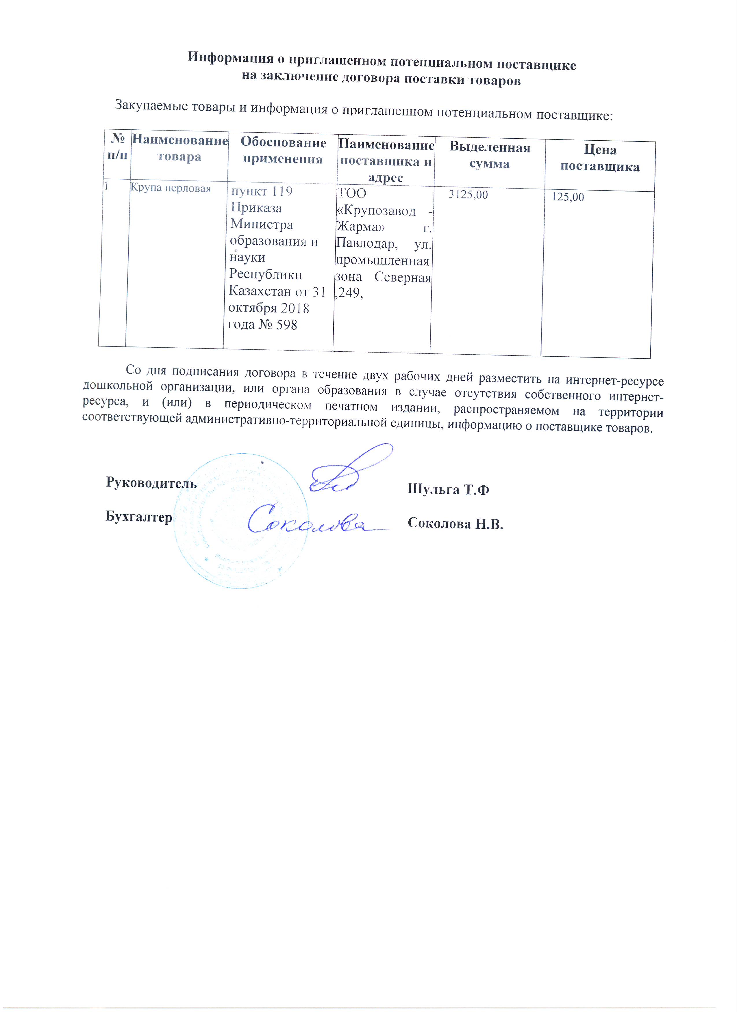 Информация о приглашенном поставщике ТОО "Крупозавод-Жарма" на 2 кв. 2020