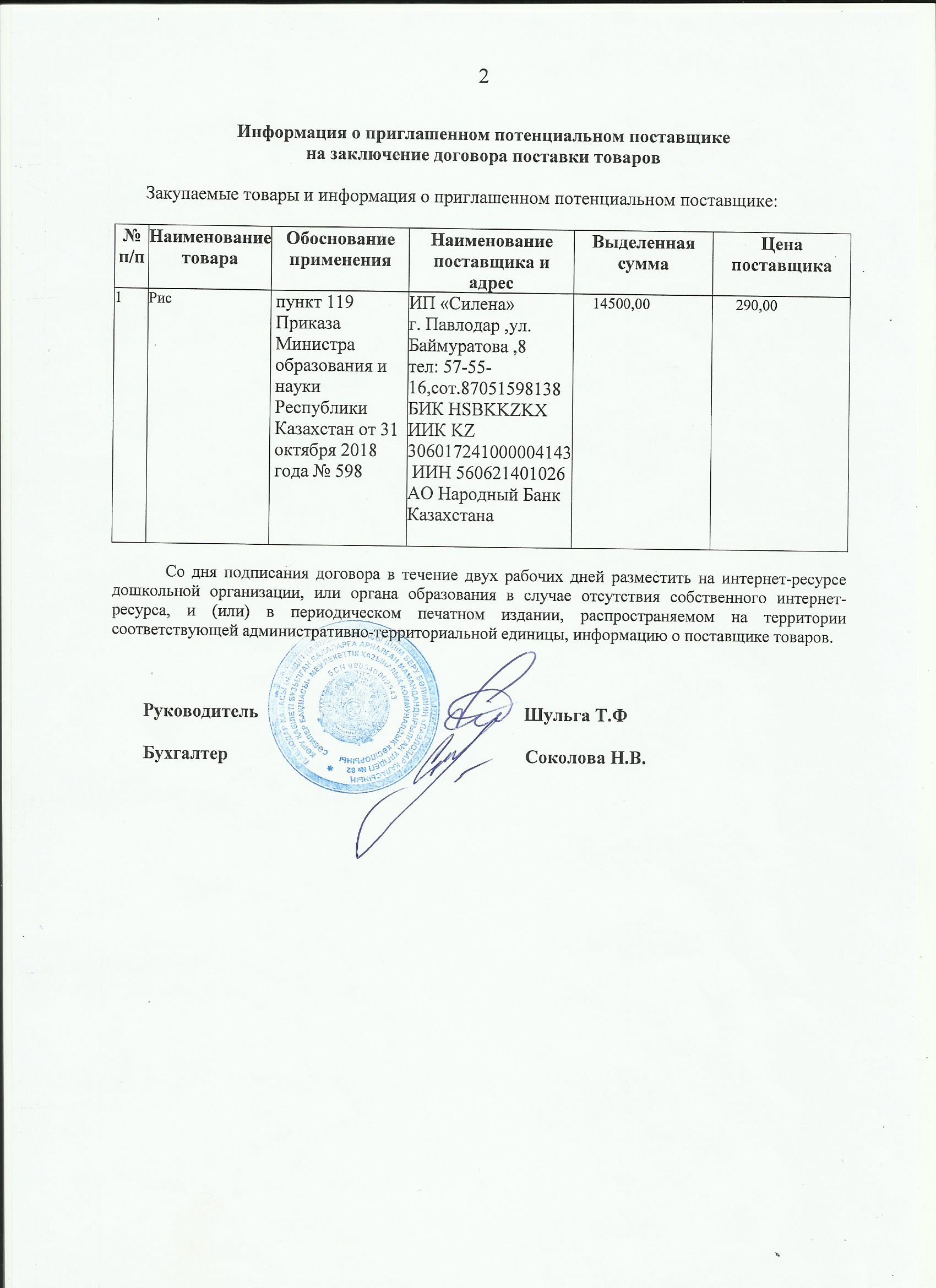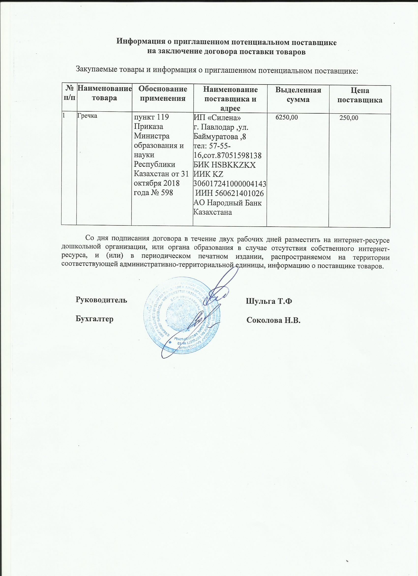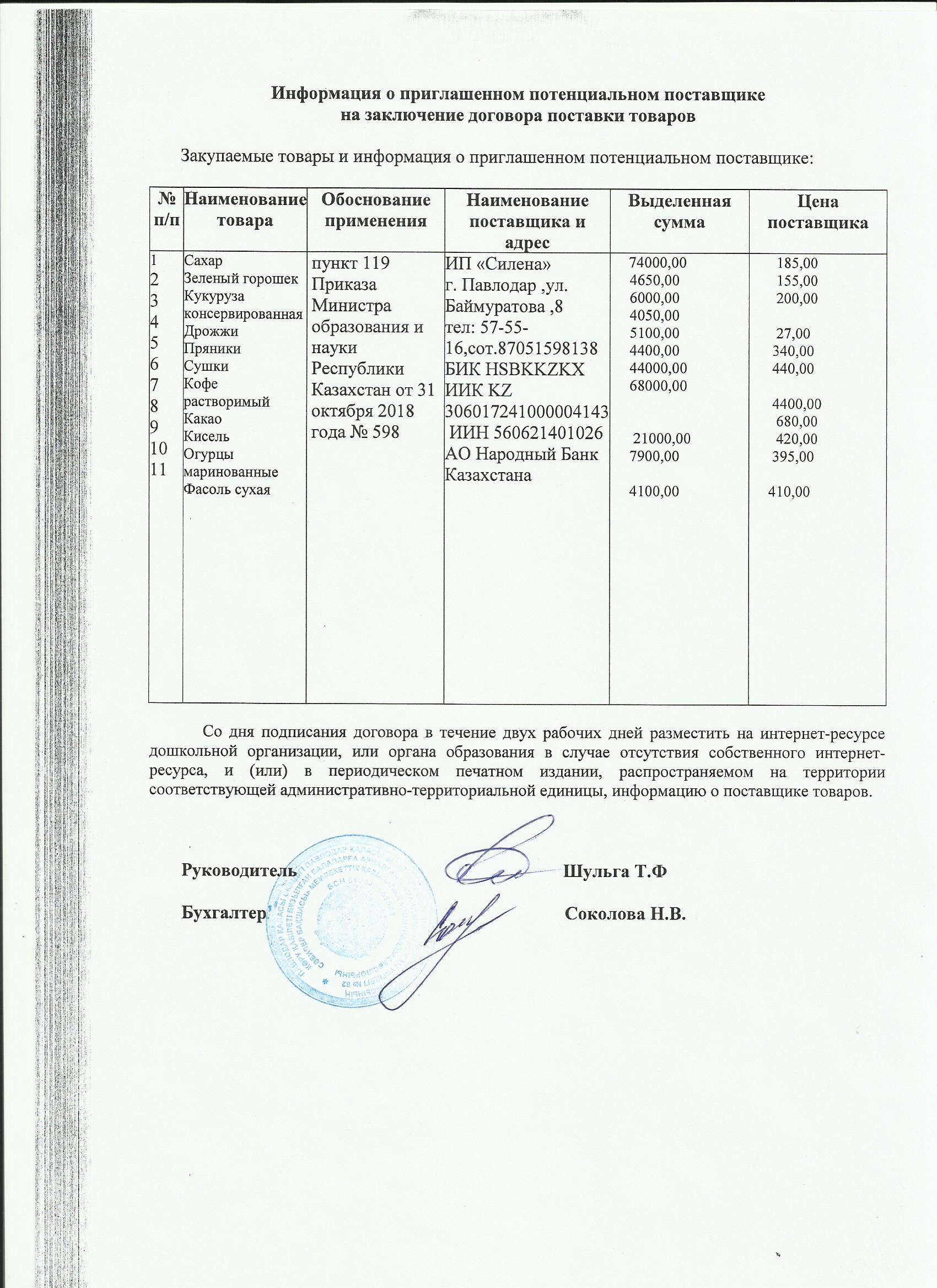 Информация о приглашенном поставщике ИП Силена (рис) 13.11.2019 | Скачать |