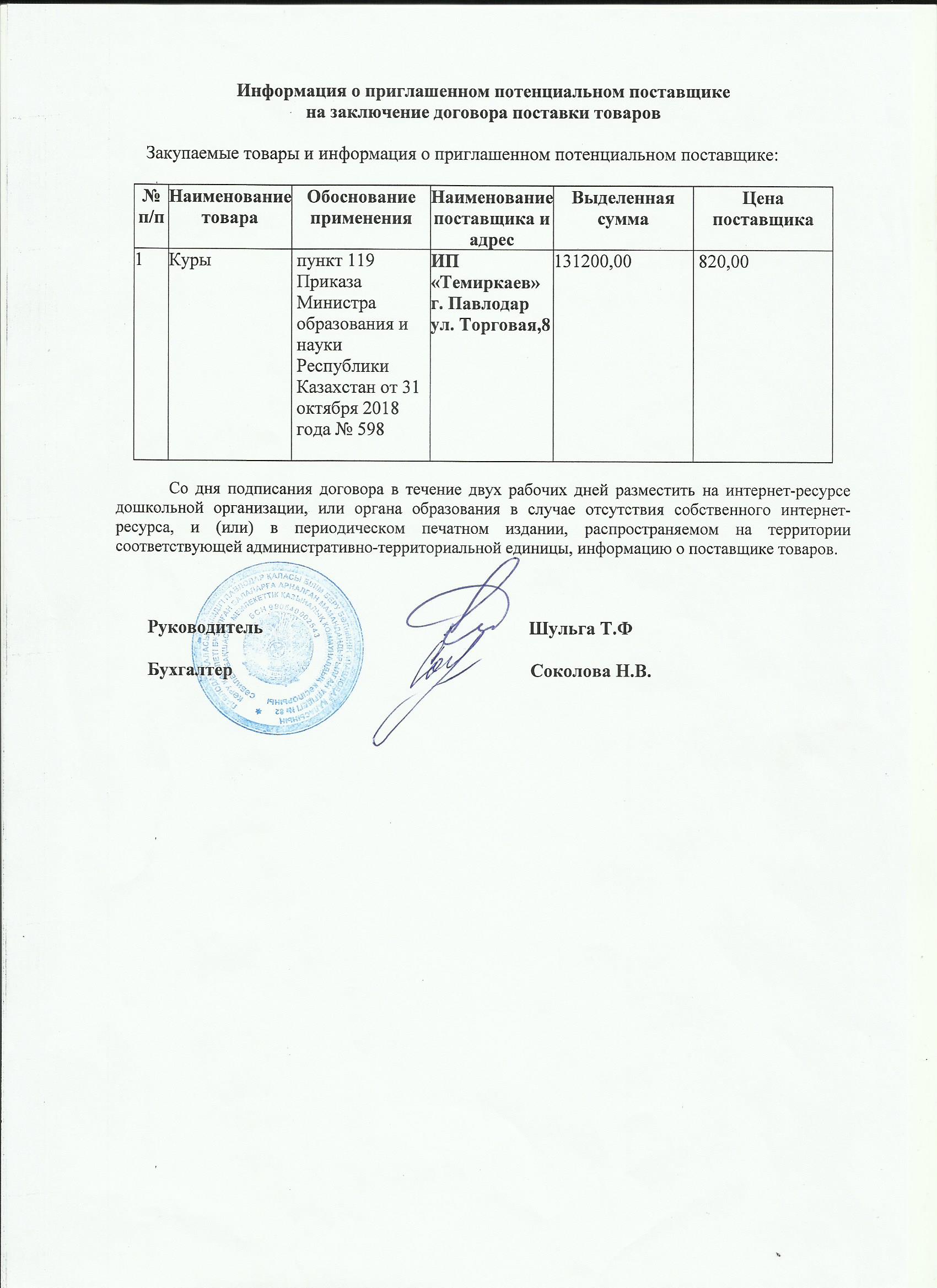 Информация о приглашенном поставщике ИП Темиркаев 1 кв 2020 | Скачать |