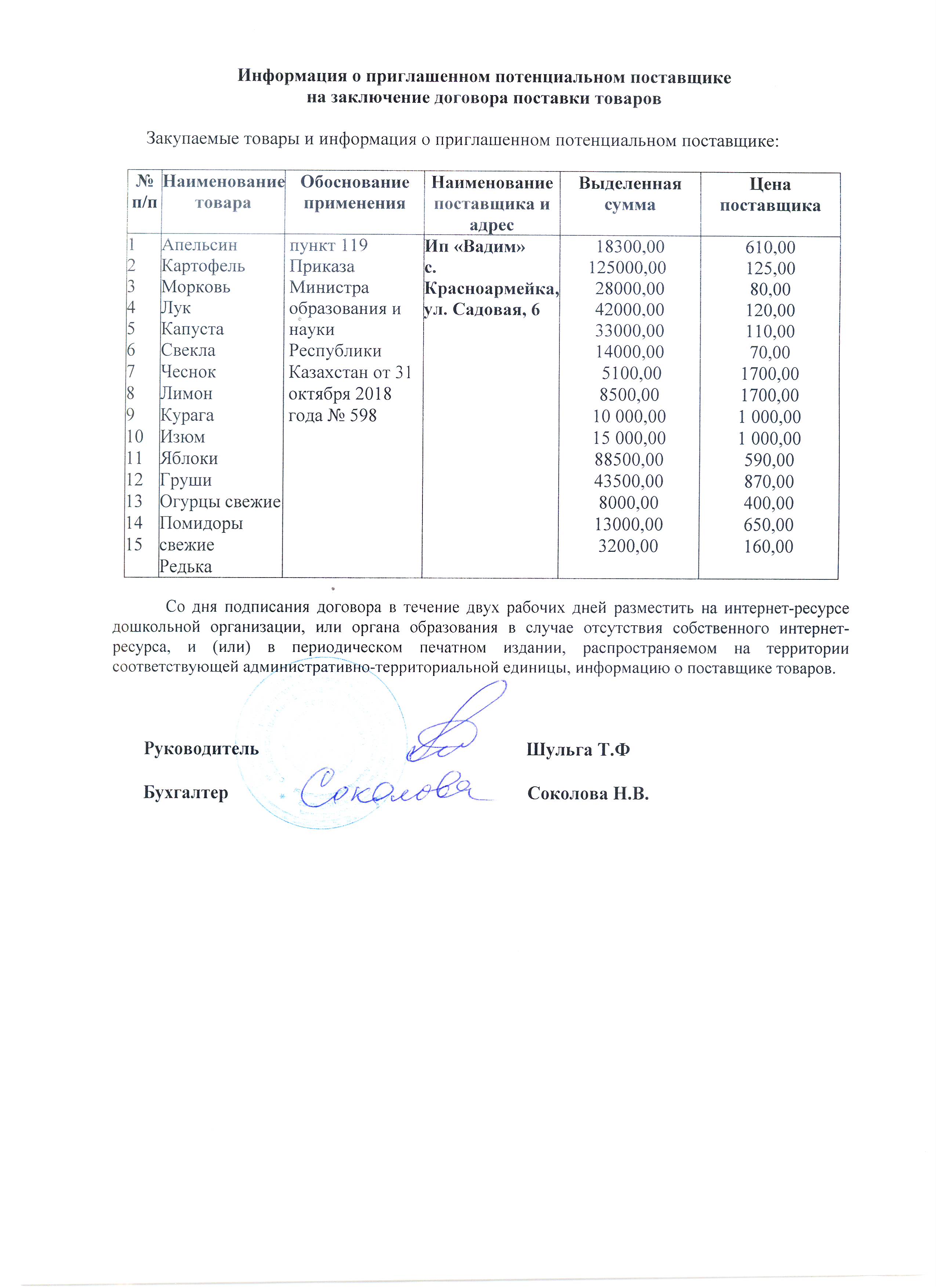 Информация о приглашенном поставщике ИП "Капенов Т.К." на 2 кв. 2020