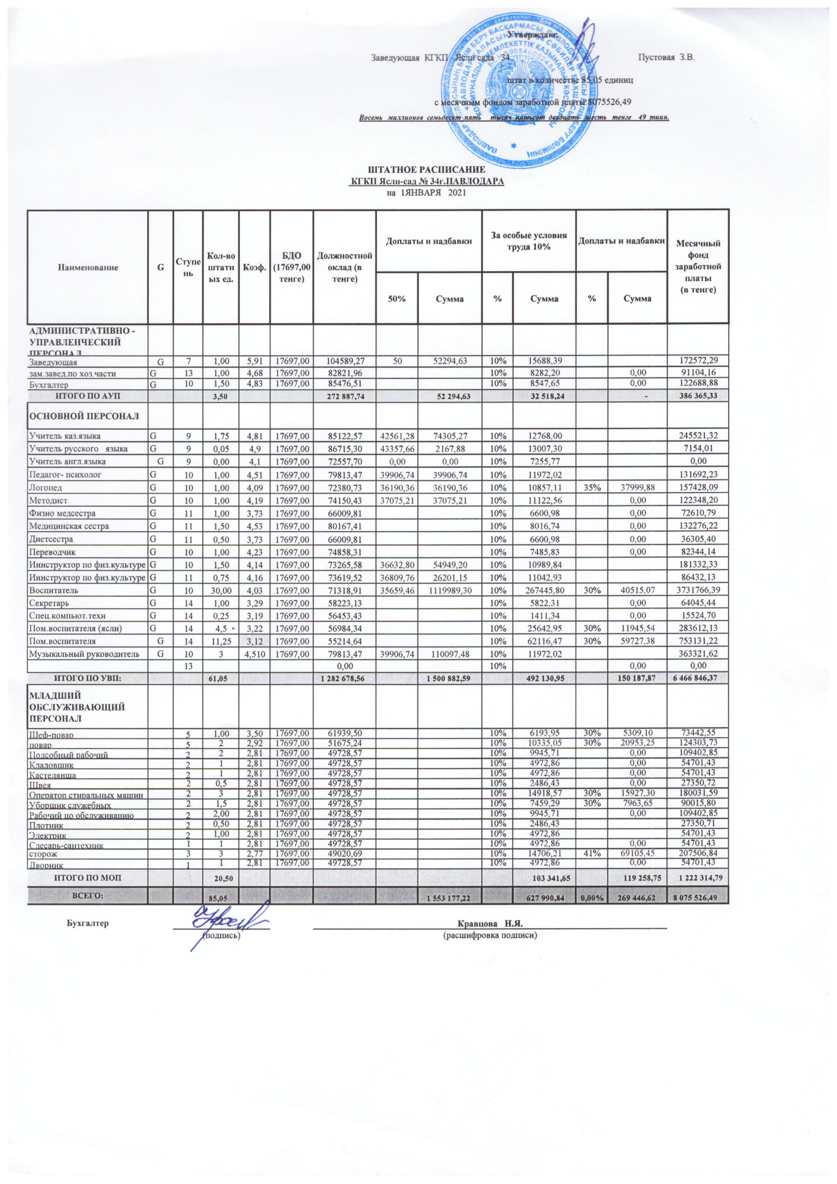Штатное Расписание на 1 сентября 2019 года | Скачать Смотреть |